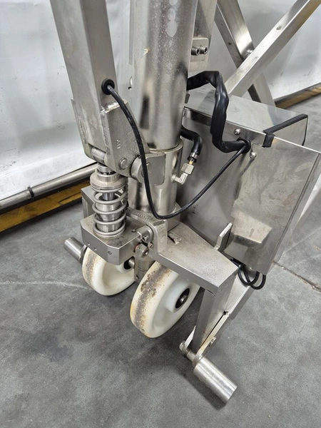 Samag s/s electric pallet lifter, type: PHE INOX, serial number: 0043243, year of construction: 2016, 12 V, max weight: 1000 kg, dimensions: 1700 mm x 600 mm x 1250 mm.