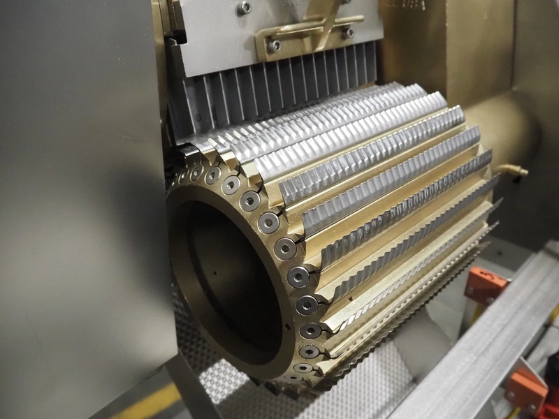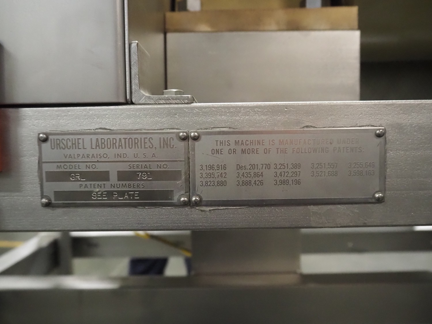 Urschel slicer for fries, model number: GRL, serial number: 791, distance between knives: 25 mm, working width: 240 mm, total dimensions: 1650 mm x 870 mm x 1450 mm. Overhauled by Servo in 2024.