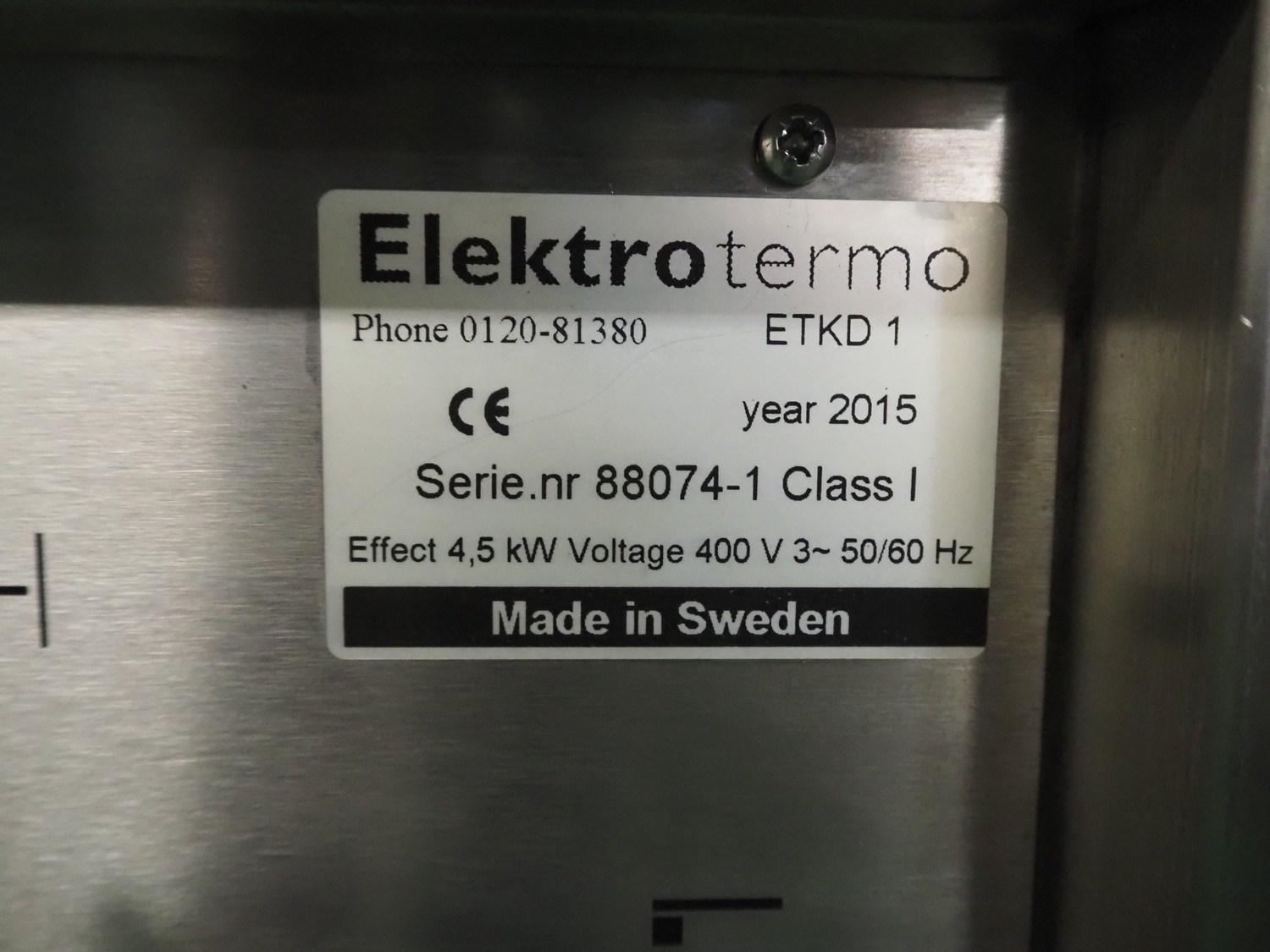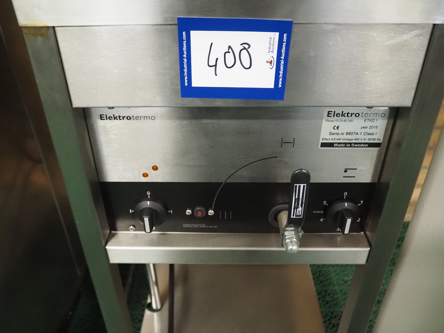 Elektro termo au bain marie, type : ETKD-1, serial number: 88074-1, year of construction: 2015, 400 V, 3 Ph, 50/60 Hz, 4.5 kW, inside dimensions: 510 mm x 310 mm x 210 mm, total dimensions: 650 mm x 400 mm x 880 mm.
