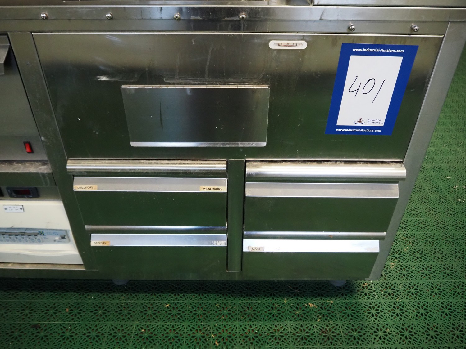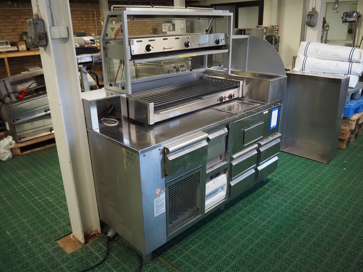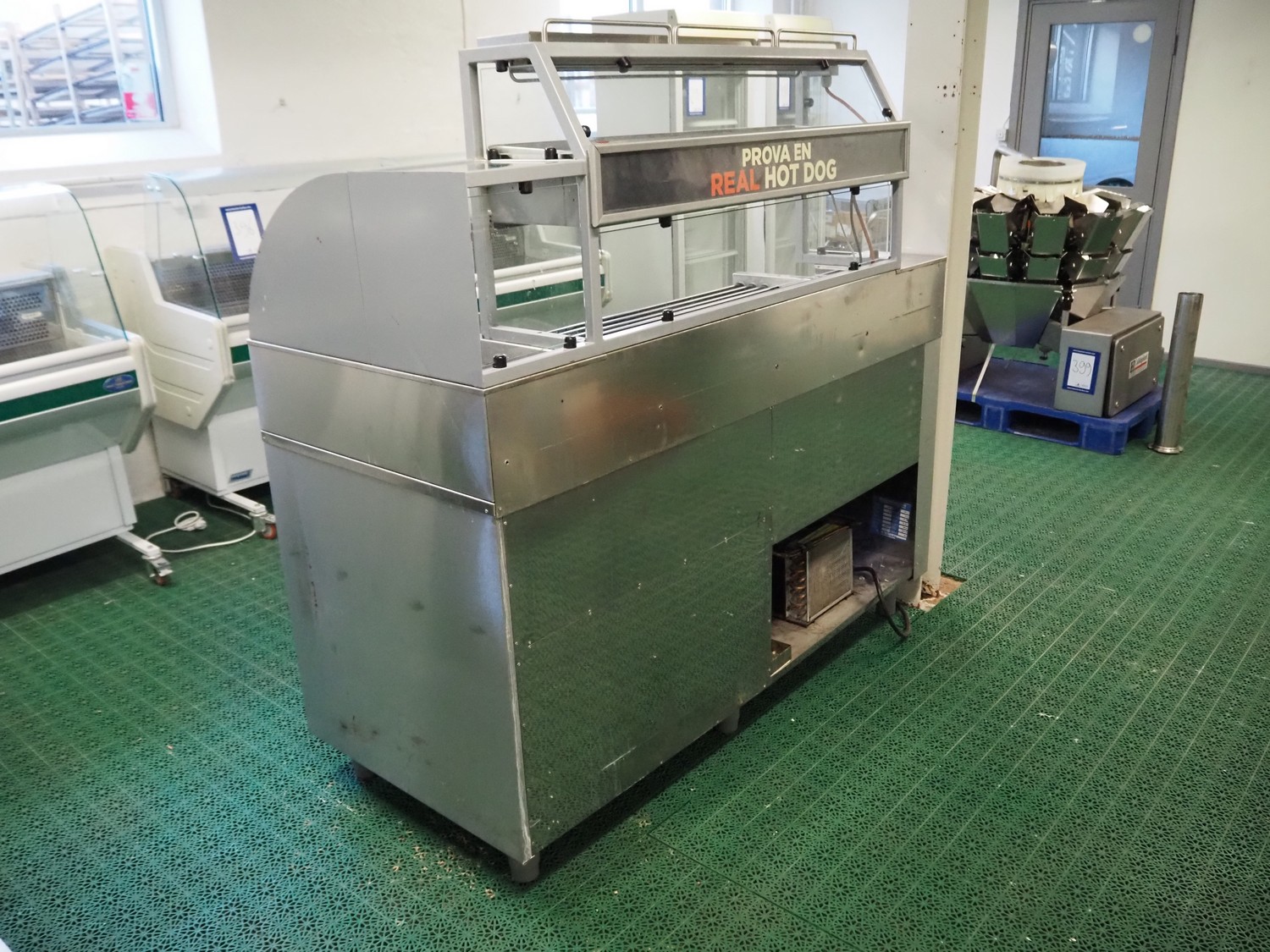 KylCity International AB hotdog grill, type: KMS 170, serial number: 34 352, year of construction: 2004-06, 220/240 V, 50 Hz, 90/30 W, refrigerant: R134a, grill width: 1000 mm, total dimensions: 1750 mm x 800 mm x 1670 mm.