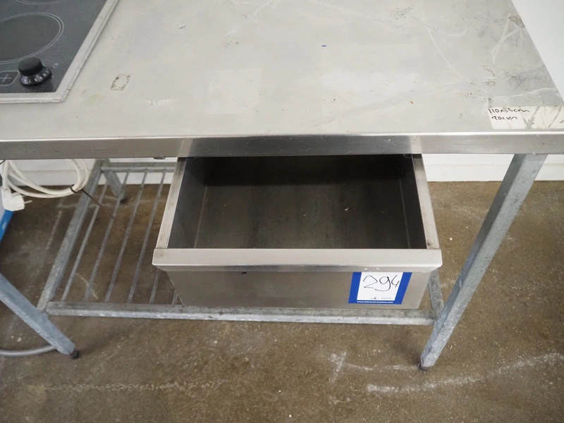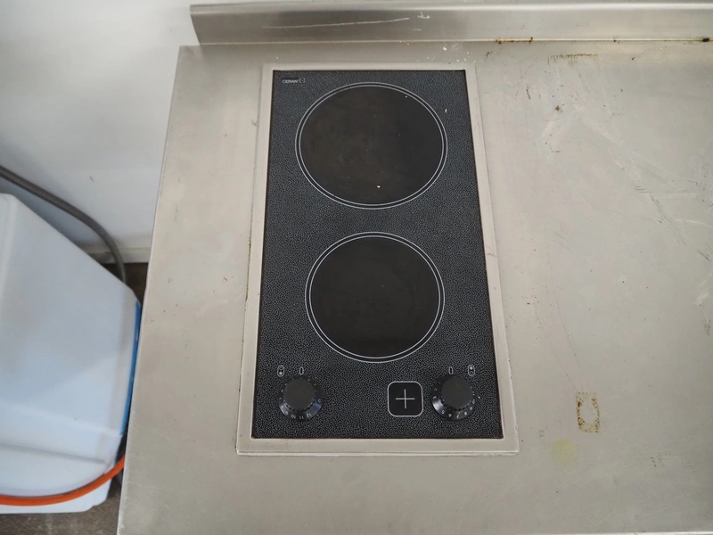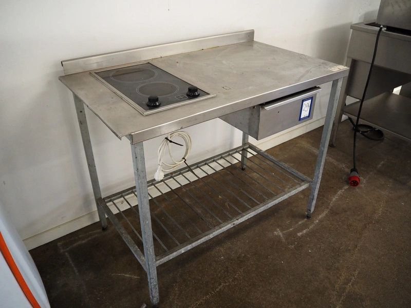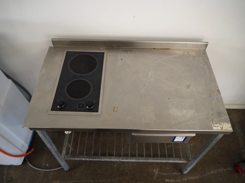 S/s table with 2 pits Ceran stove, stove dimensions: 510 mm x 285 mm, total dimensions: 1100 mm x 650 mm x 970 mm.