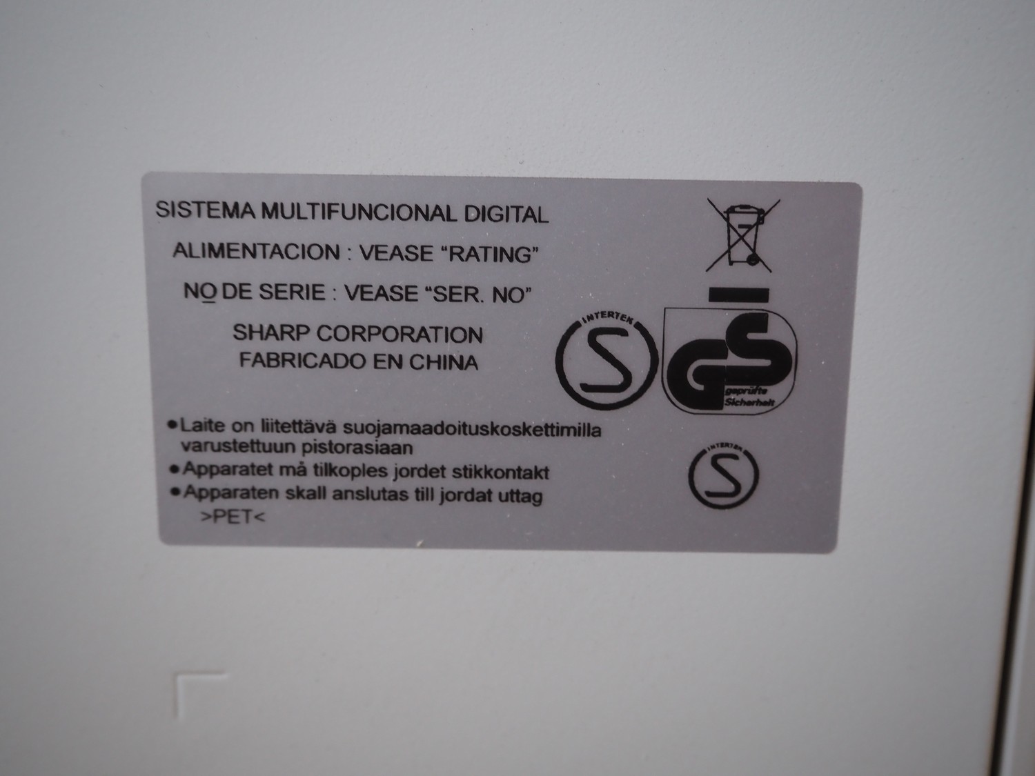 Sharp printer, model MX-M363N, serial number: 05042247, 220-240 V, 50-60 Hz, 8 A, 1840 W, dimensions: 700 mm x 700 mm x 1200 mm.