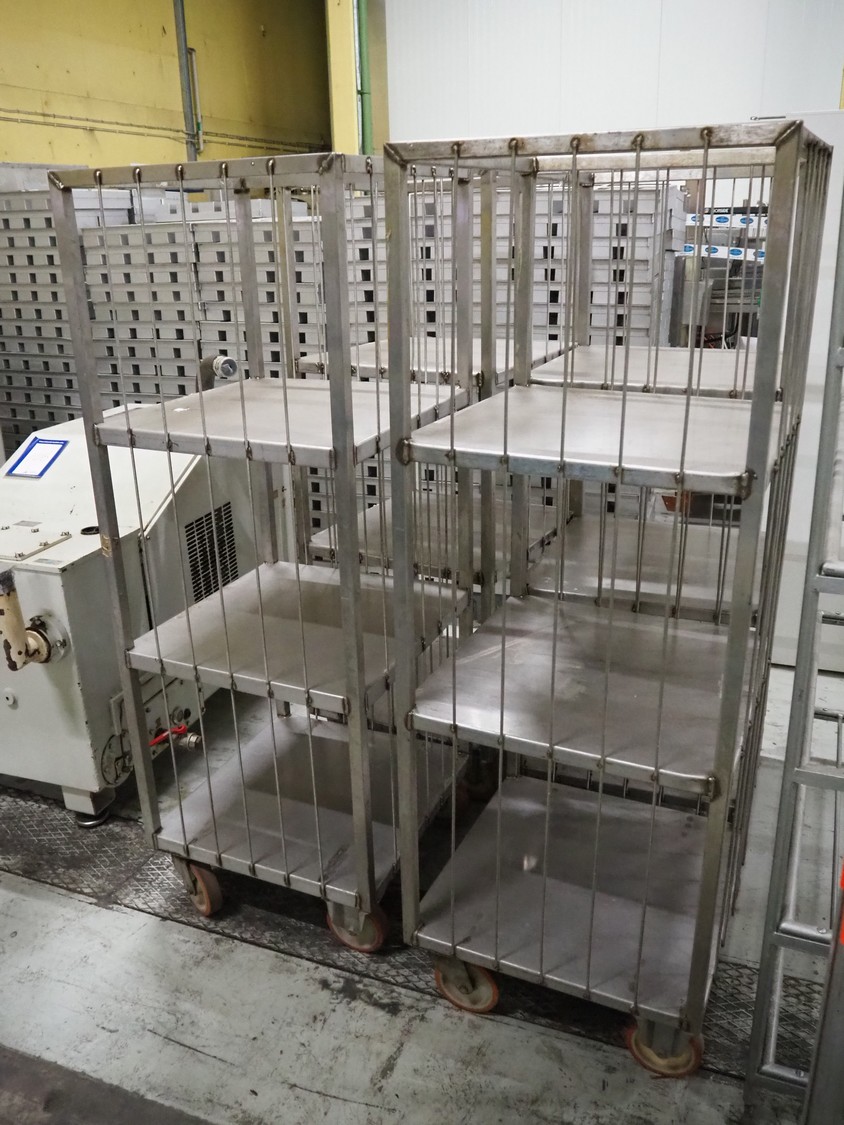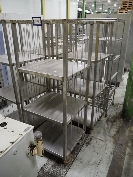 2 s/s trolleys, dimensions: (2x) 650 mm x 600 mm x 1720 mm.