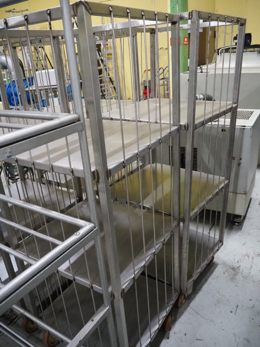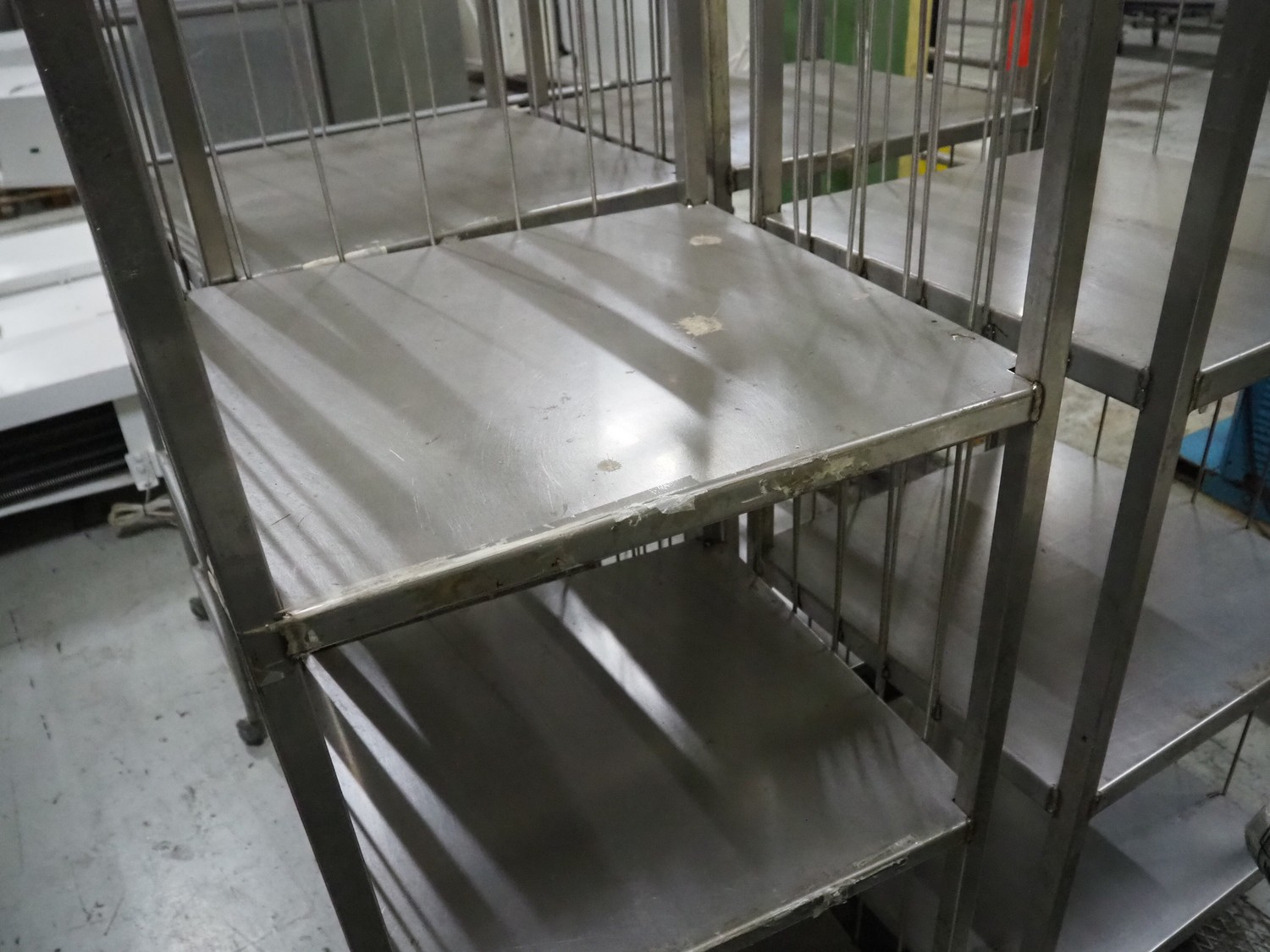 2 s/s trolleys, dimensions: (2x) 650 mm x 600 mm x 1720 mm.
