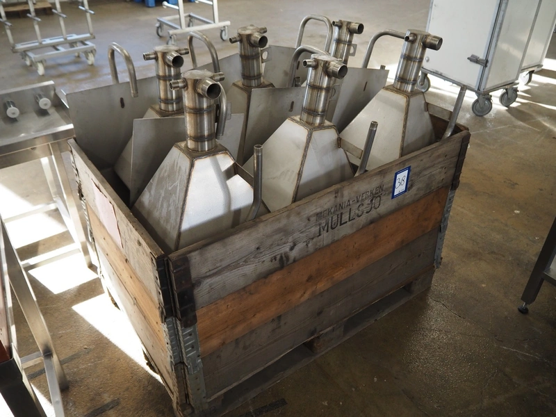 Pallet with 12 s/s sinks, dimensions: 1200 mm x 800 mmx 1100 mm.