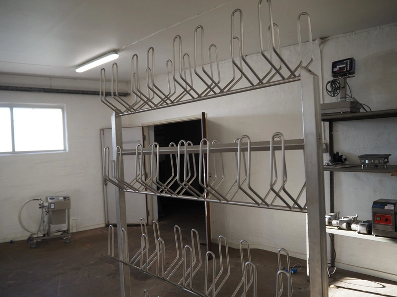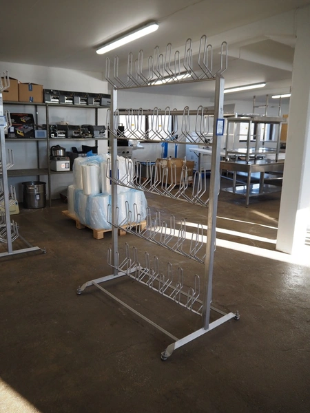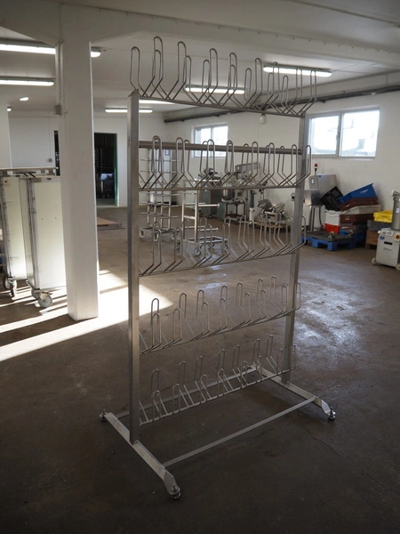 S/s shoe rack for 40 pairs of shoes, dimensions: 1200 mm x 800 mm x 2000 mm.