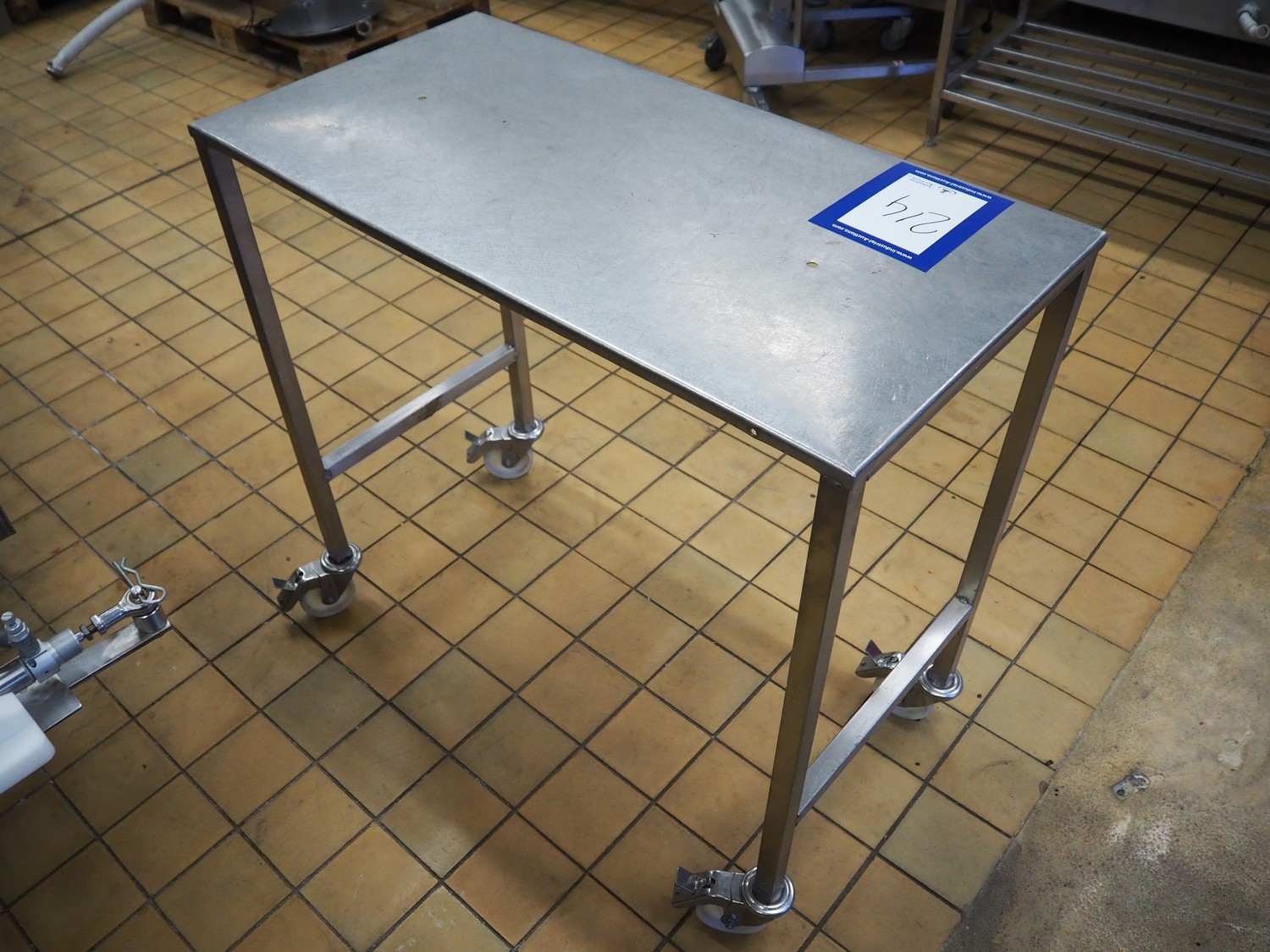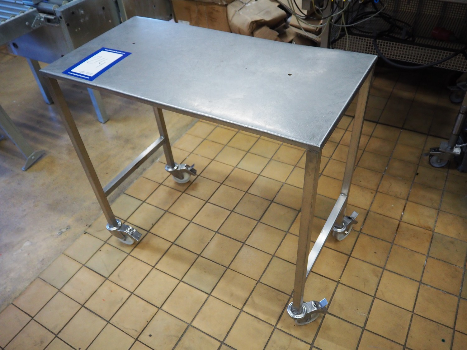 S/s mobile table, dimensions: 1000 mm x 500 mm x 930 mm.