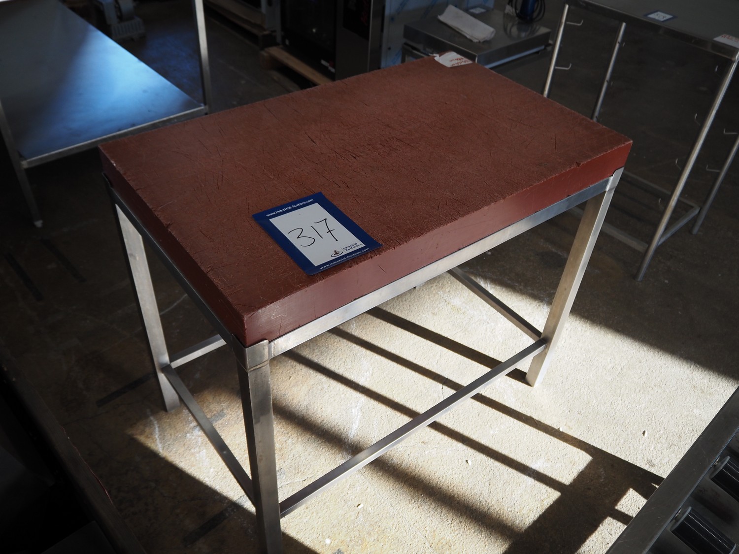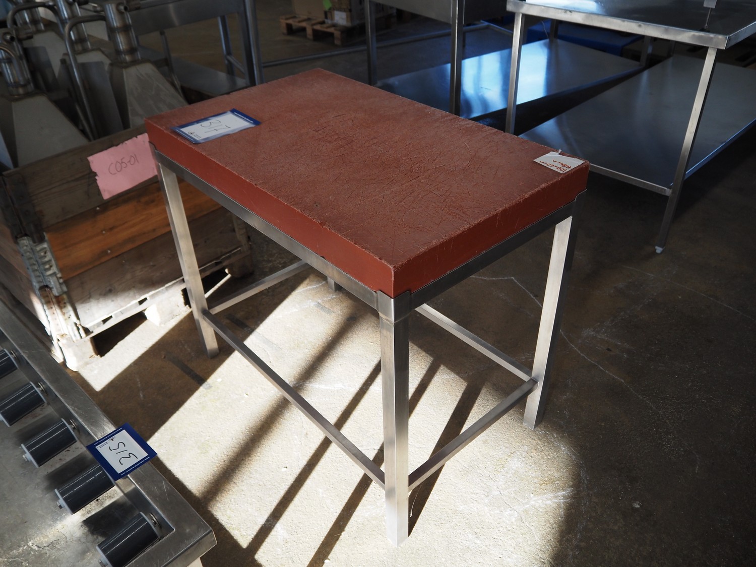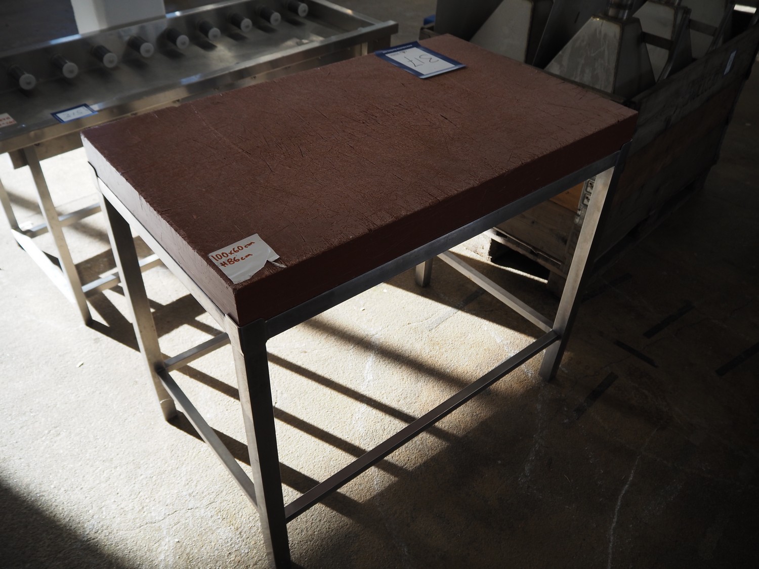 S/s table with plastic top, dimensions: 1000 mm x 600 mm x 860 mm.