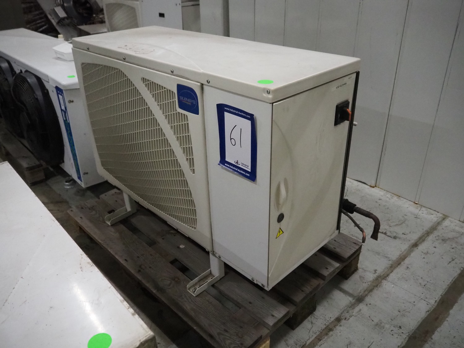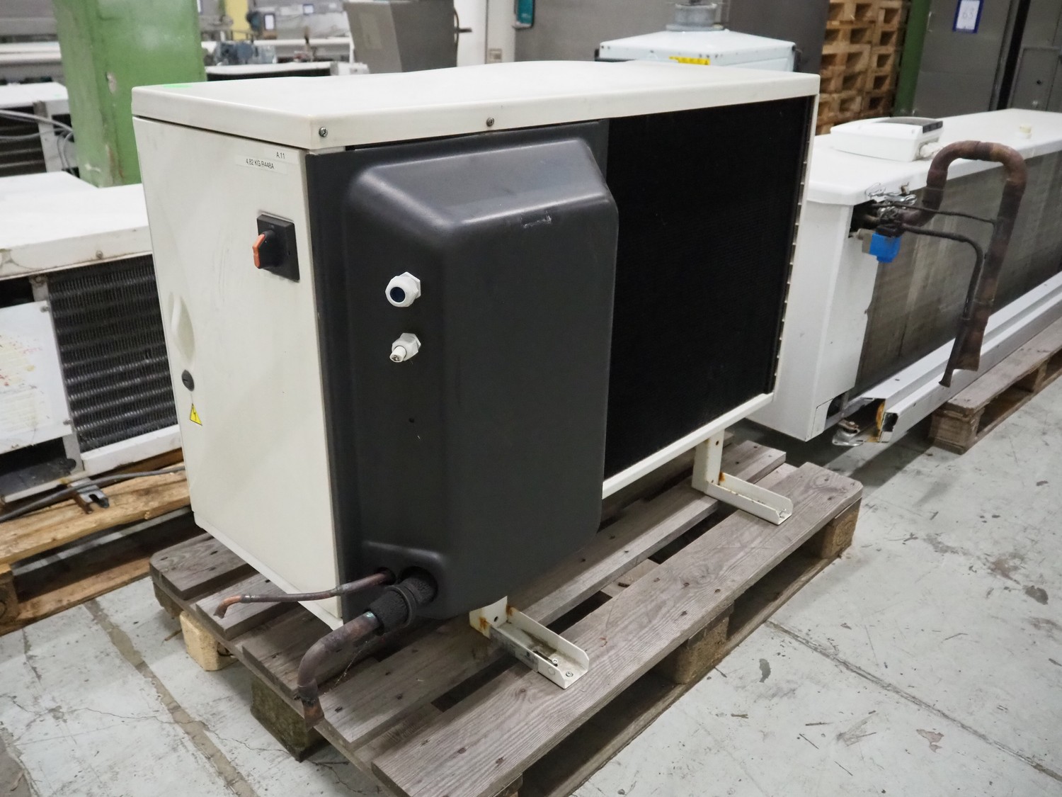 L'unite Hermentique condenser, serial number: 17A13 064340 S993530205, 400/440 V, 3 Ph, 50/60 Hz, 5.4/5.7 A, refrigerant: R404A, 1 fan, dimensions: 1100 mm x 720 mm x 820 mm.