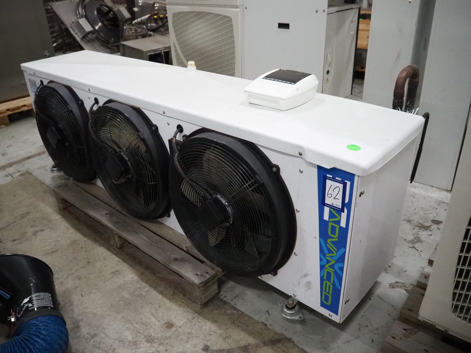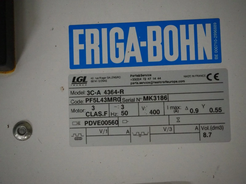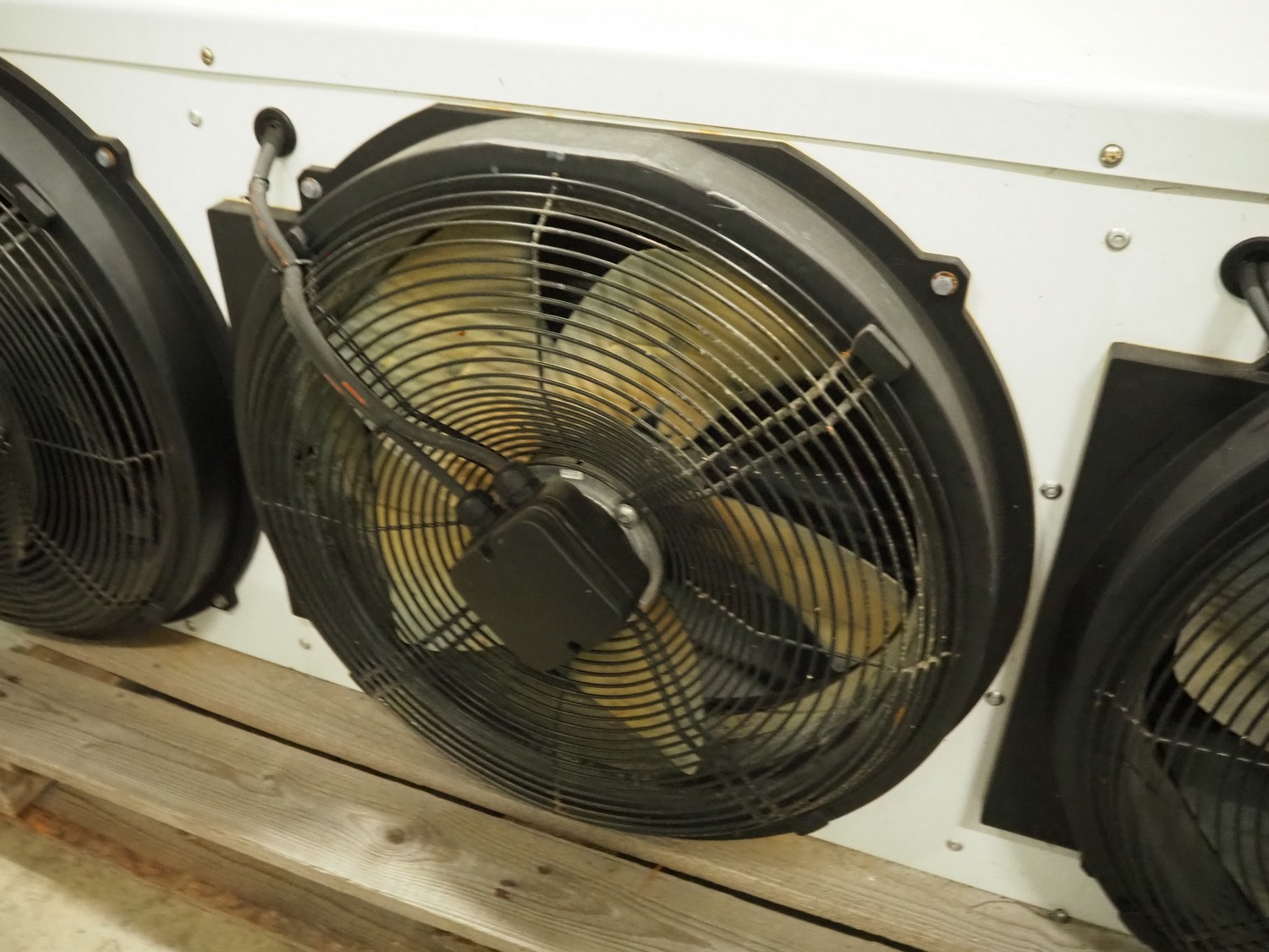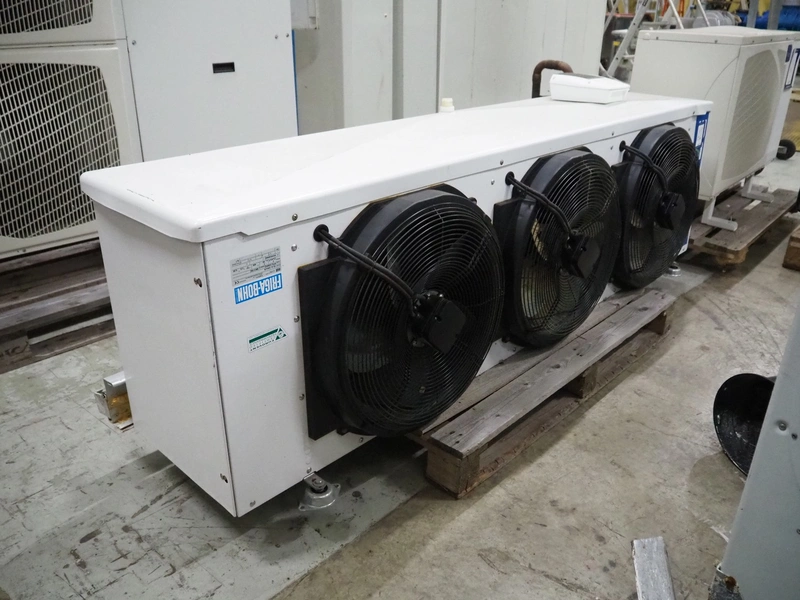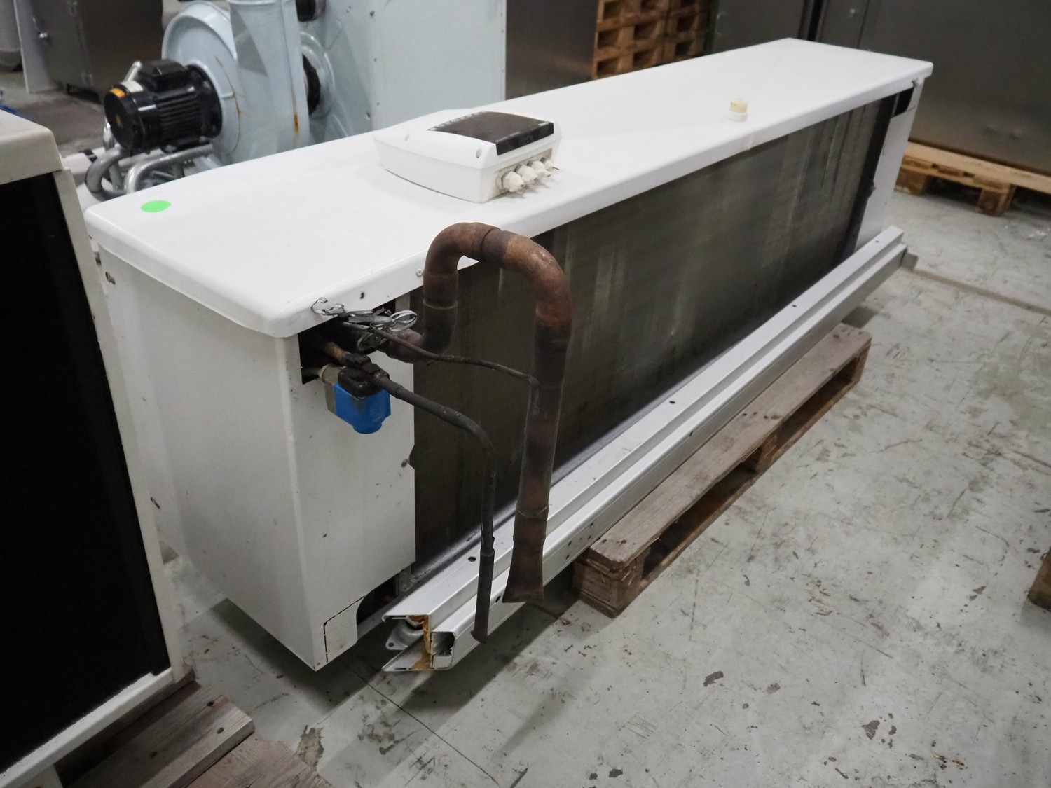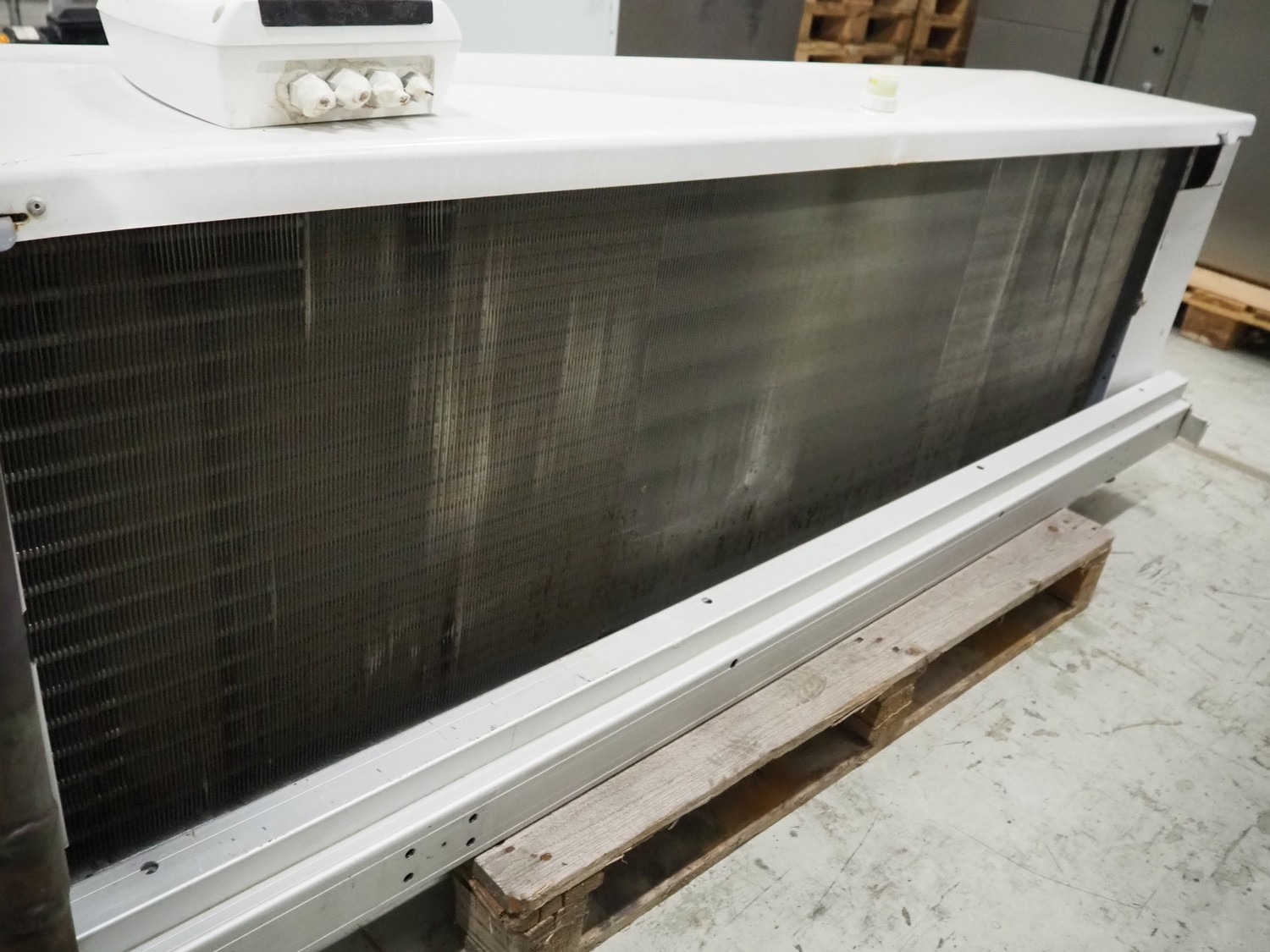 Friga-Bohn evaporator with 3 fans, model: 3C-A 4364-R, serial number: MK3186, 400 V, 3 Ph, 50 Hz, 0.9/0.55 A, tube volume: 8.7 dm3, 3 fans, dimensions: 2200 mm x 750 mm x 670 mm.