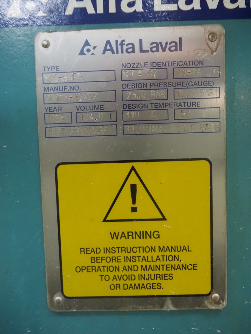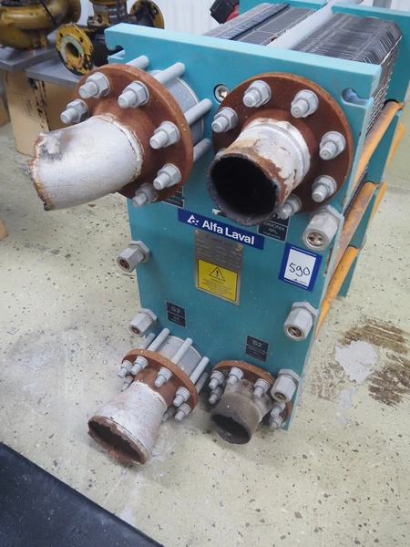 Alfa Laval heat exchanger, type: M10-BWFD, manufacturing number: 30101-12952, year of construction: 1995, volume: 104.0 liter, design pressure: 25.0 bar, design temperature: 110˚C, total dimensions: 1700 mm x 500 mm x 1000 mm. Lot located on another location in Sövestad (SE), viewing and pick up in consultation with Industrial Auctions BV.