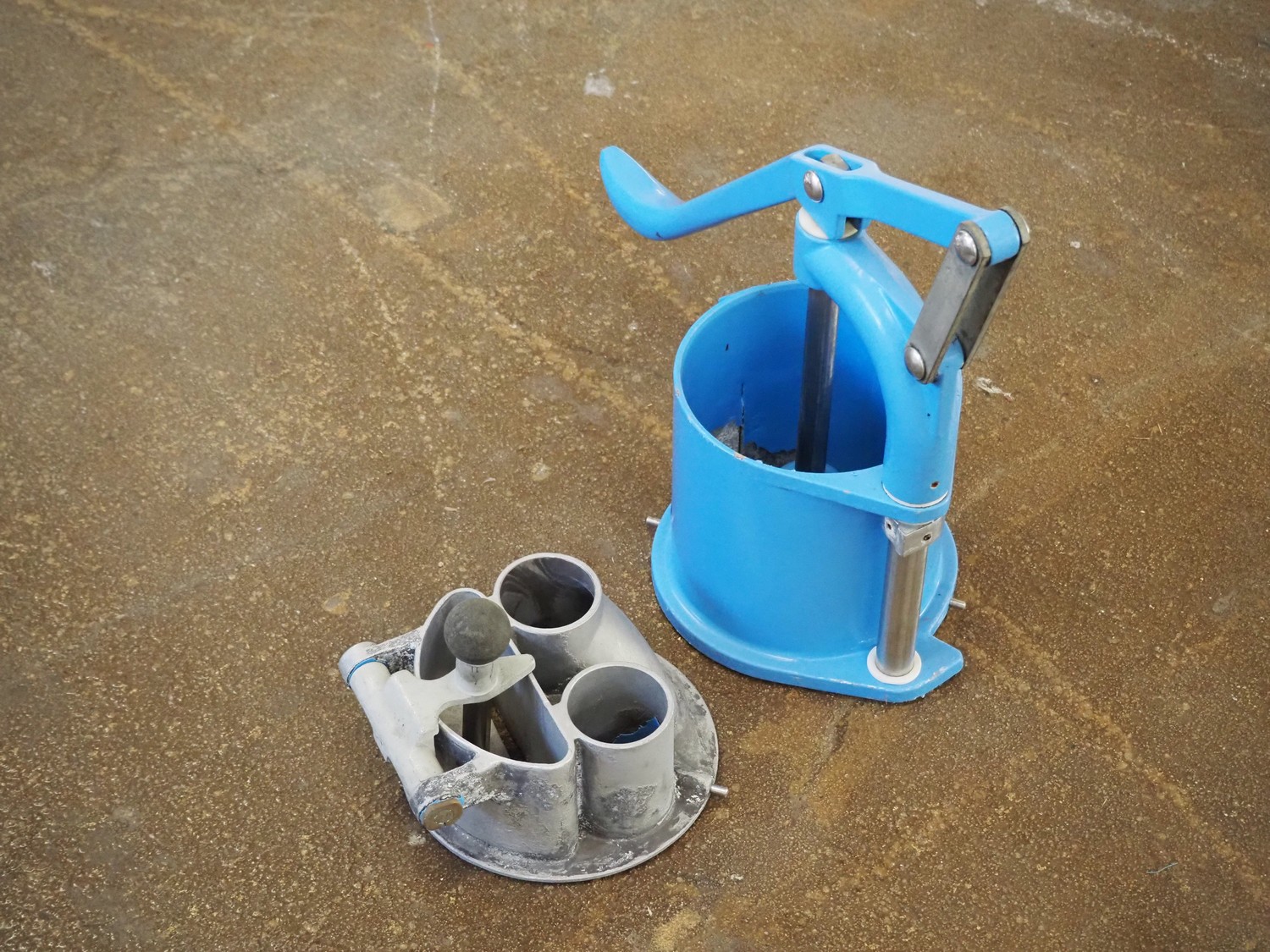 Press for Hallde vegetable slicer, diameter clearance: 200 mm, total dimensions: 450 mm x 220 mm x 430 mm.