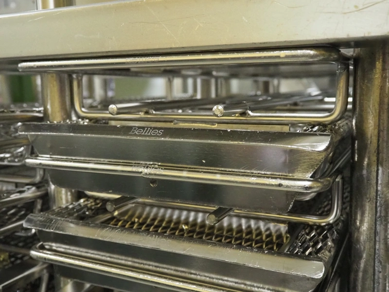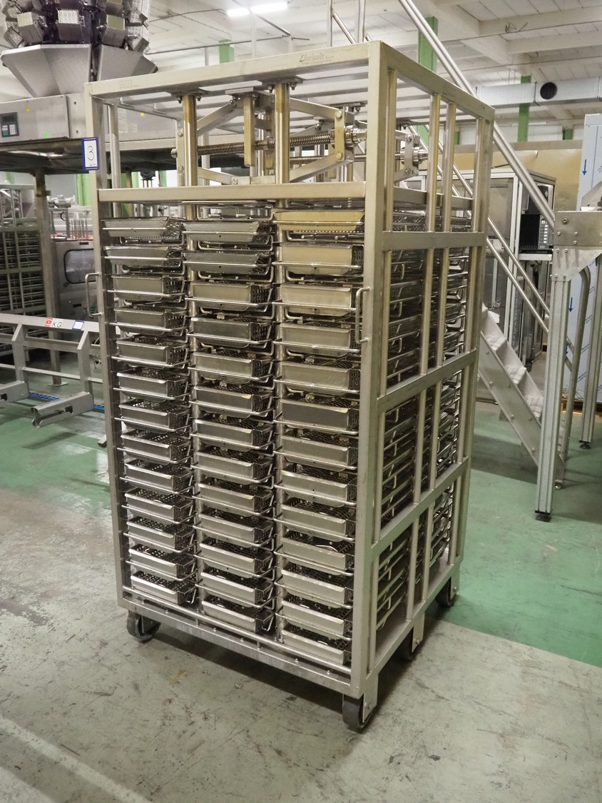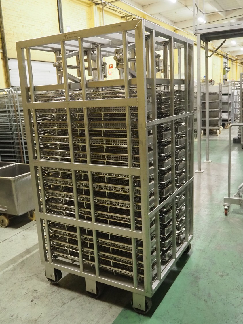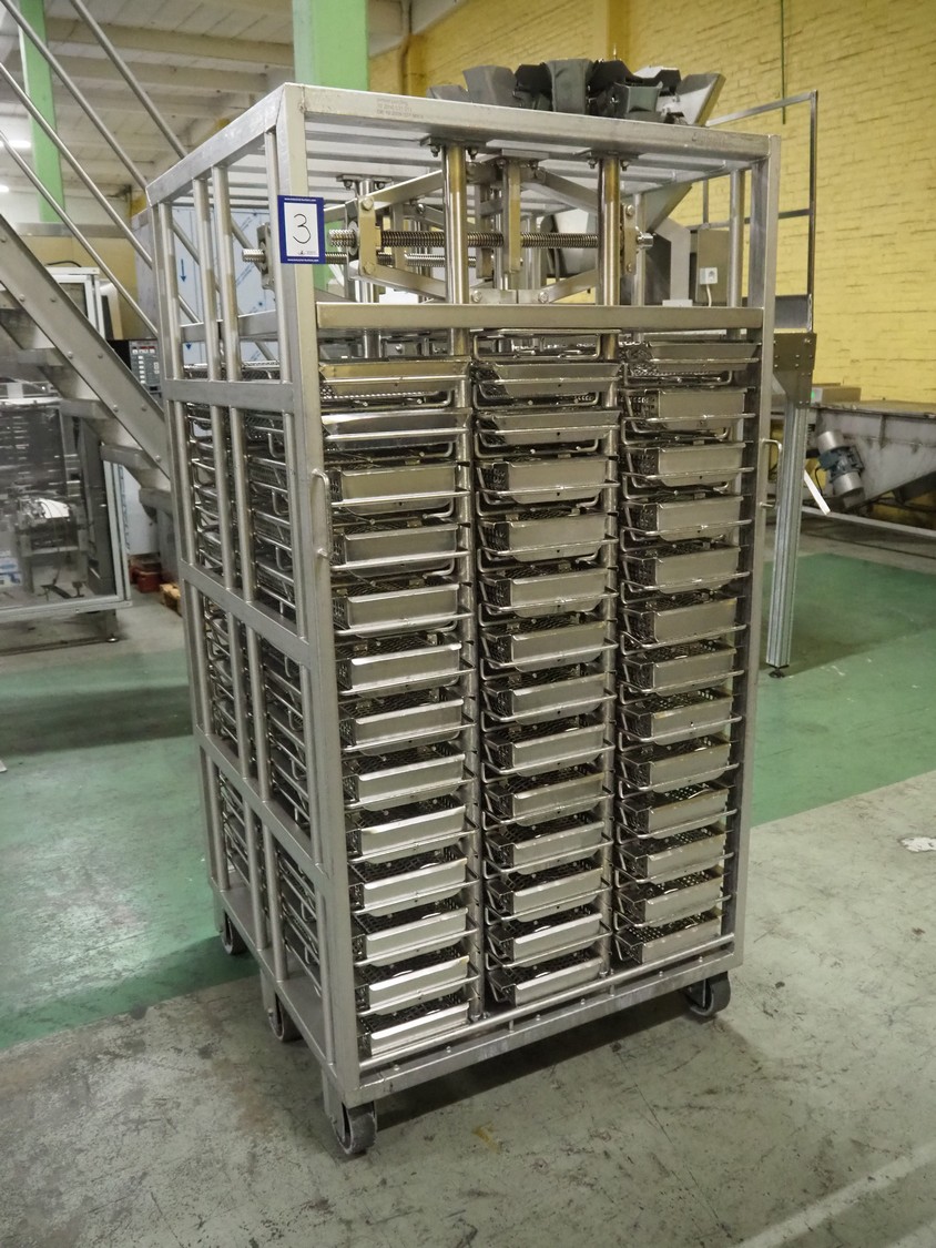 Eberhardt GmbH mobile s/s spindle-type boiling press with moulds, dimensions each mould: 590 mm x 280 mm x 80 mm, total dimensions: 1100 mm x 1000 mm x 1980 mm.