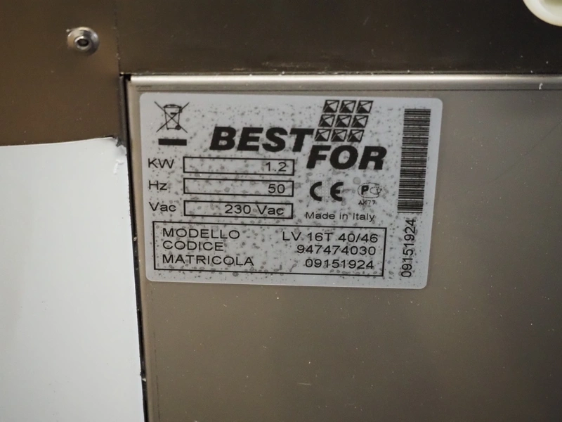 Best For proofing cabinet, model: LV 16T 40/46, serial number: 09151924, 230 V, 50 Hz, 1.2 kW, 8 floors, dimensions each floor: 850 mm x 650 mm, total dimensions: 850 mm x 880 mm x 880 mm.