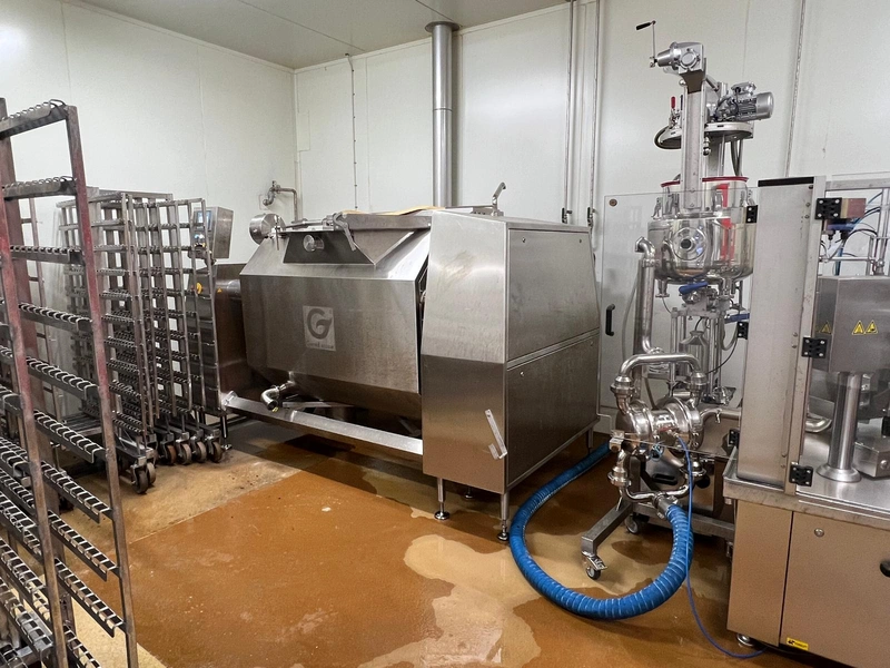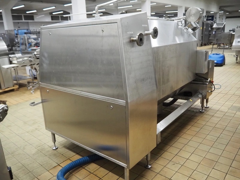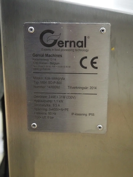 Gernal cooking kettle wit agitator, type: MBK-SD-P-800, number: 14/00092, year of construction: 2014, 400 V, 3 Ph, 50 Hz, 9.5 A, 1.1 kW, volume: 800 liter, dimensions: 3000 mm x 1600 mm x 1700 mm.