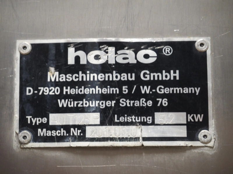 Holac dicer, type: AUT 125 P, machine number: 201.01.01, 5.2 kW, dimensions chamber: 115 mm x 115 mm, total dimensions: 2150 mm x 1140 mm x 1600 mm.