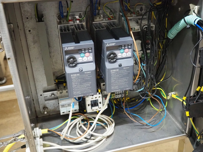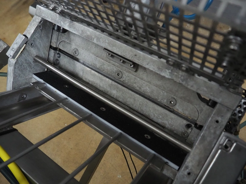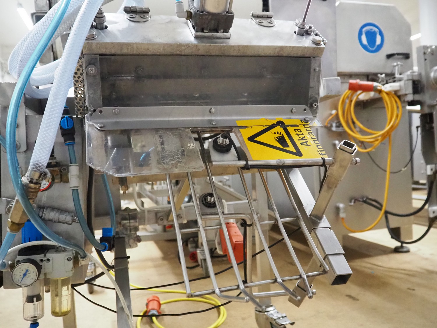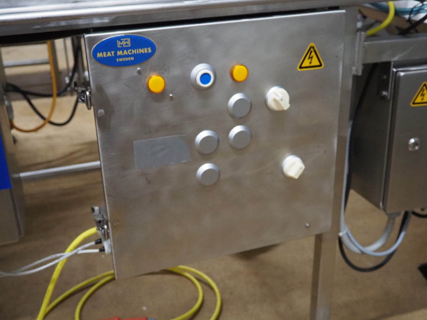 Mobile flattener, plastic belt, belt width: 570 mm, total dimensions: 1900 mm x 920 mm x 1450 mm.