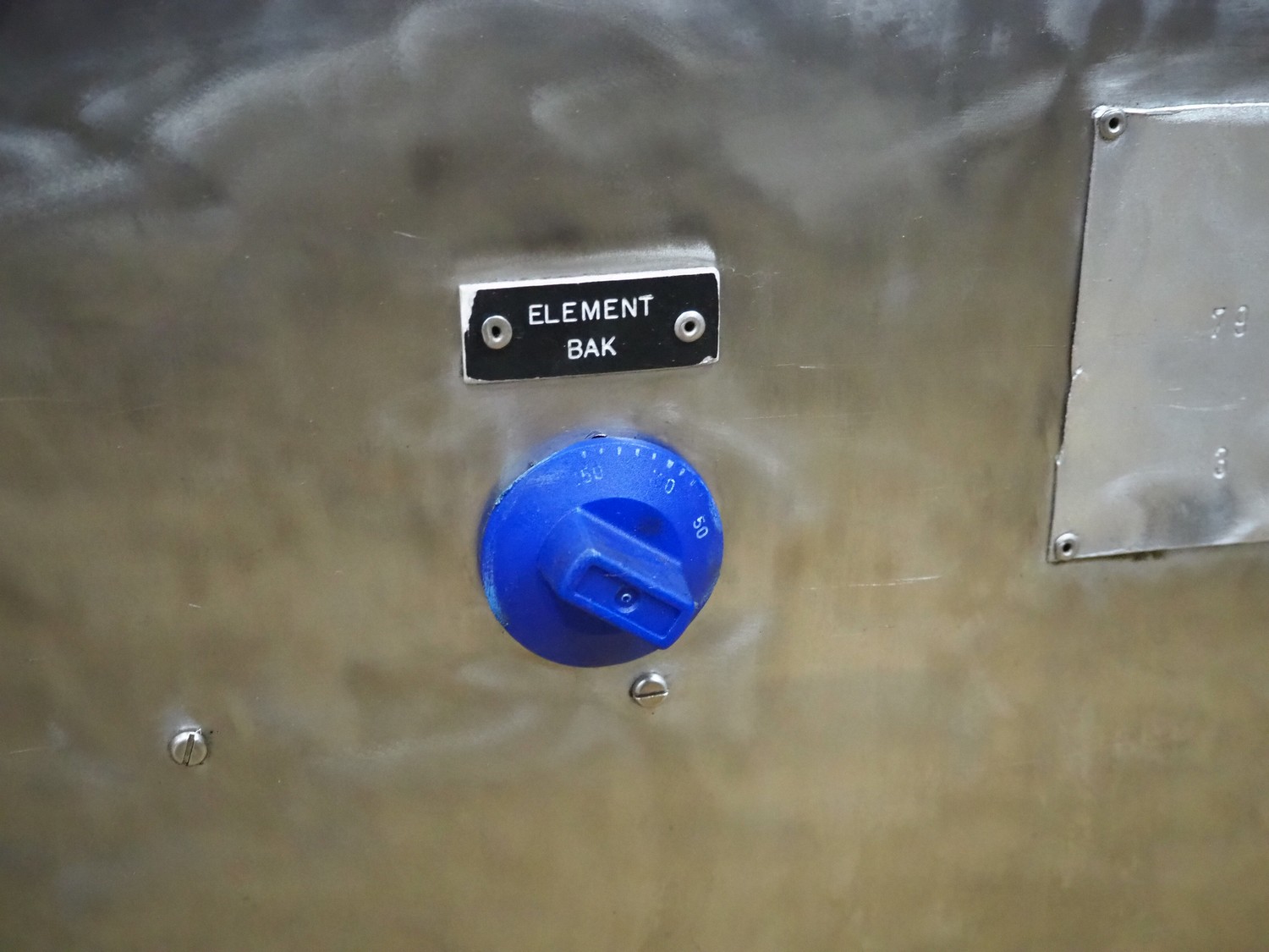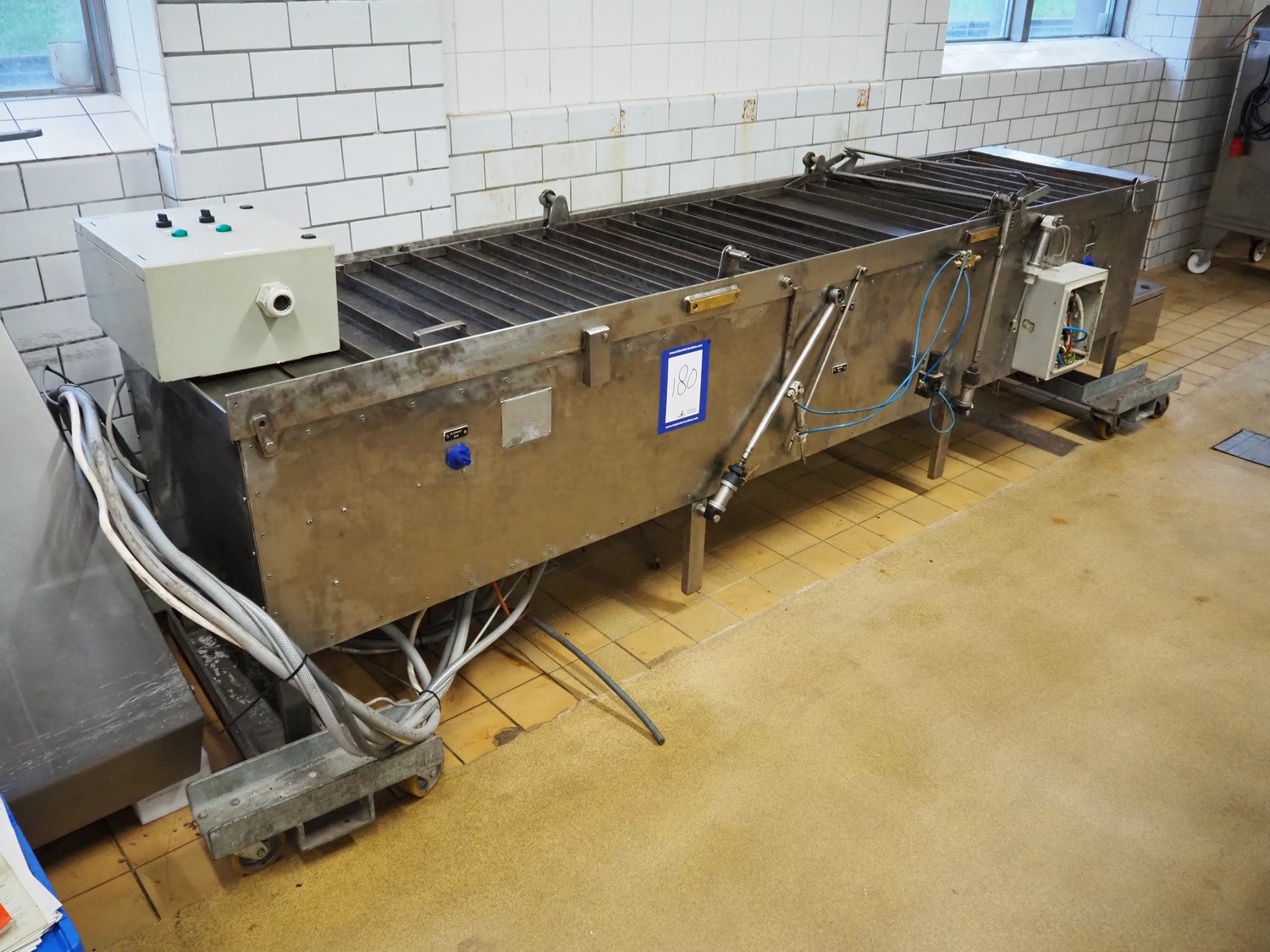 S/s grill, 35 kW, electric heated, dimensions: 3200 mm x 800 mm x 900 mm. Transport rollies not included.