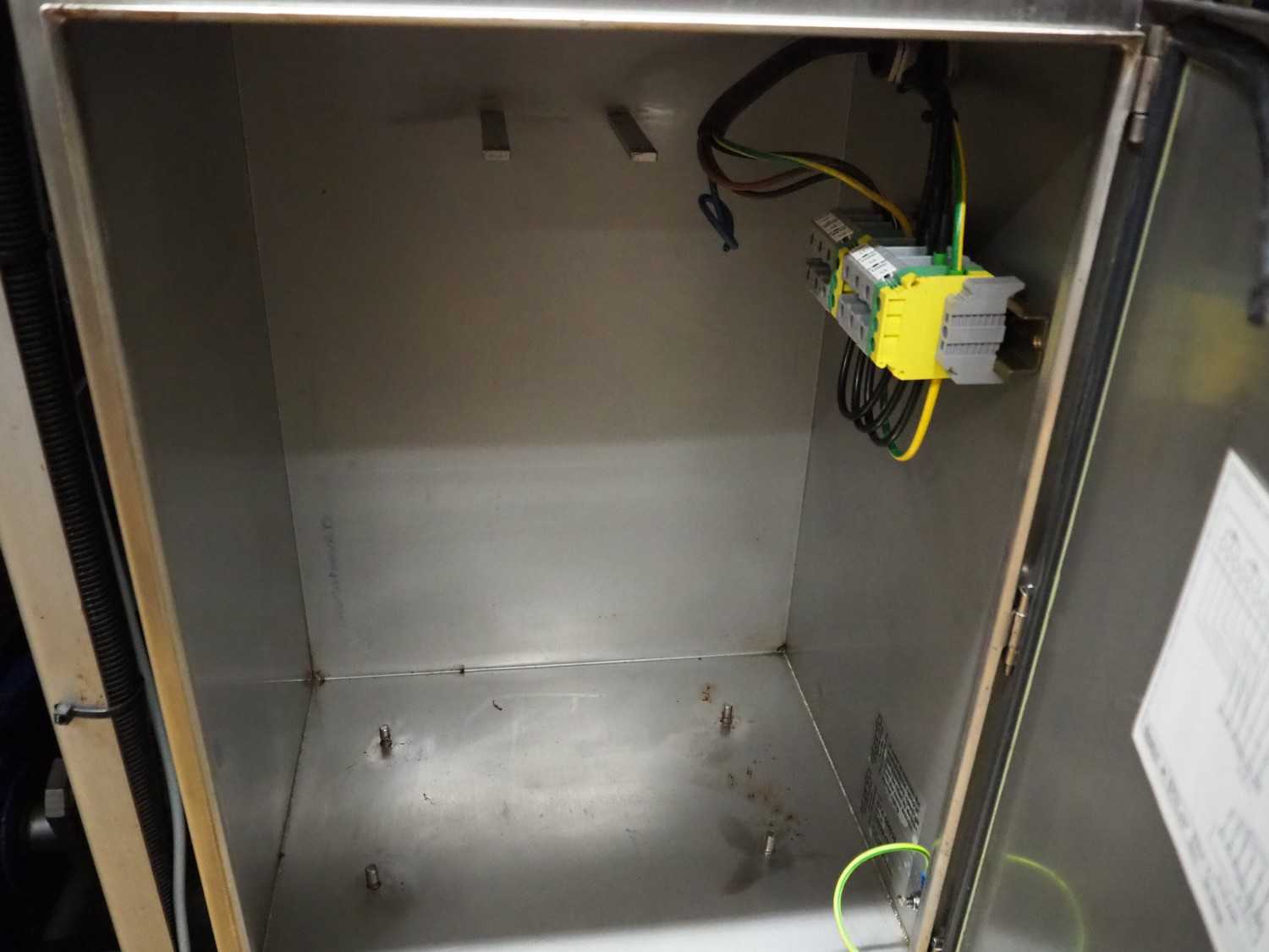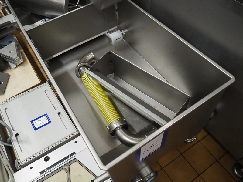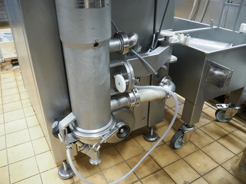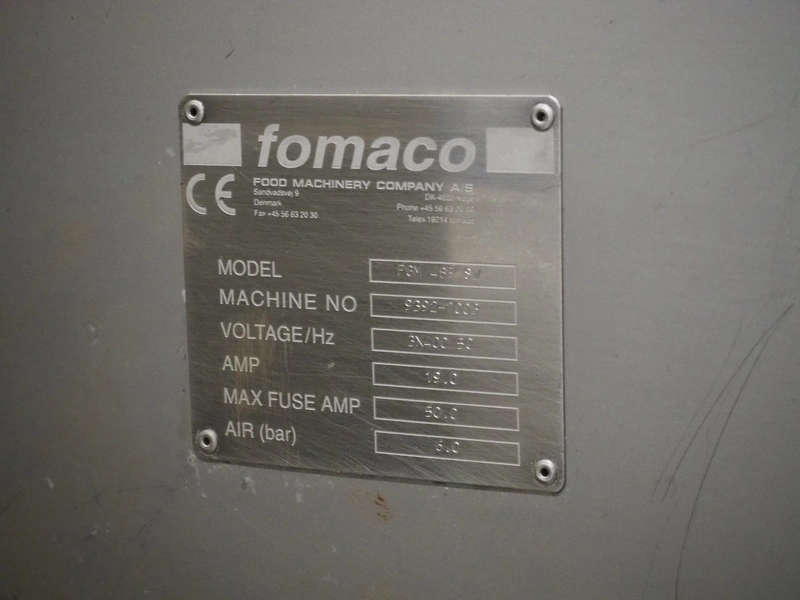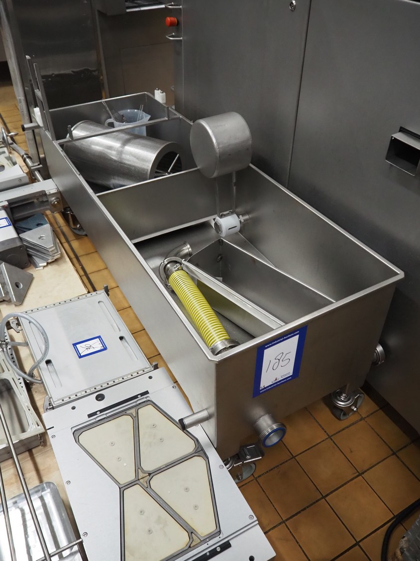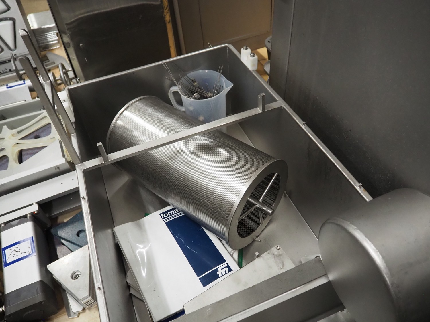 Fomaco injector for fish / salmon with filter tub, model: FGM 48F SW, machine number: 9392, year of construction: 2003, 400 V, 3 Ph, 50 Hz, 19 A, s/s walking beam, beam width: 420 mm, working width: 405 mm, dimensions injector: 2250 mm x 800 mm x 2250 mm, dimensions filter tub: 1700 mm x 600 mm x 700 mm.