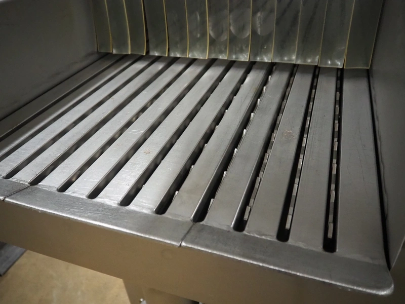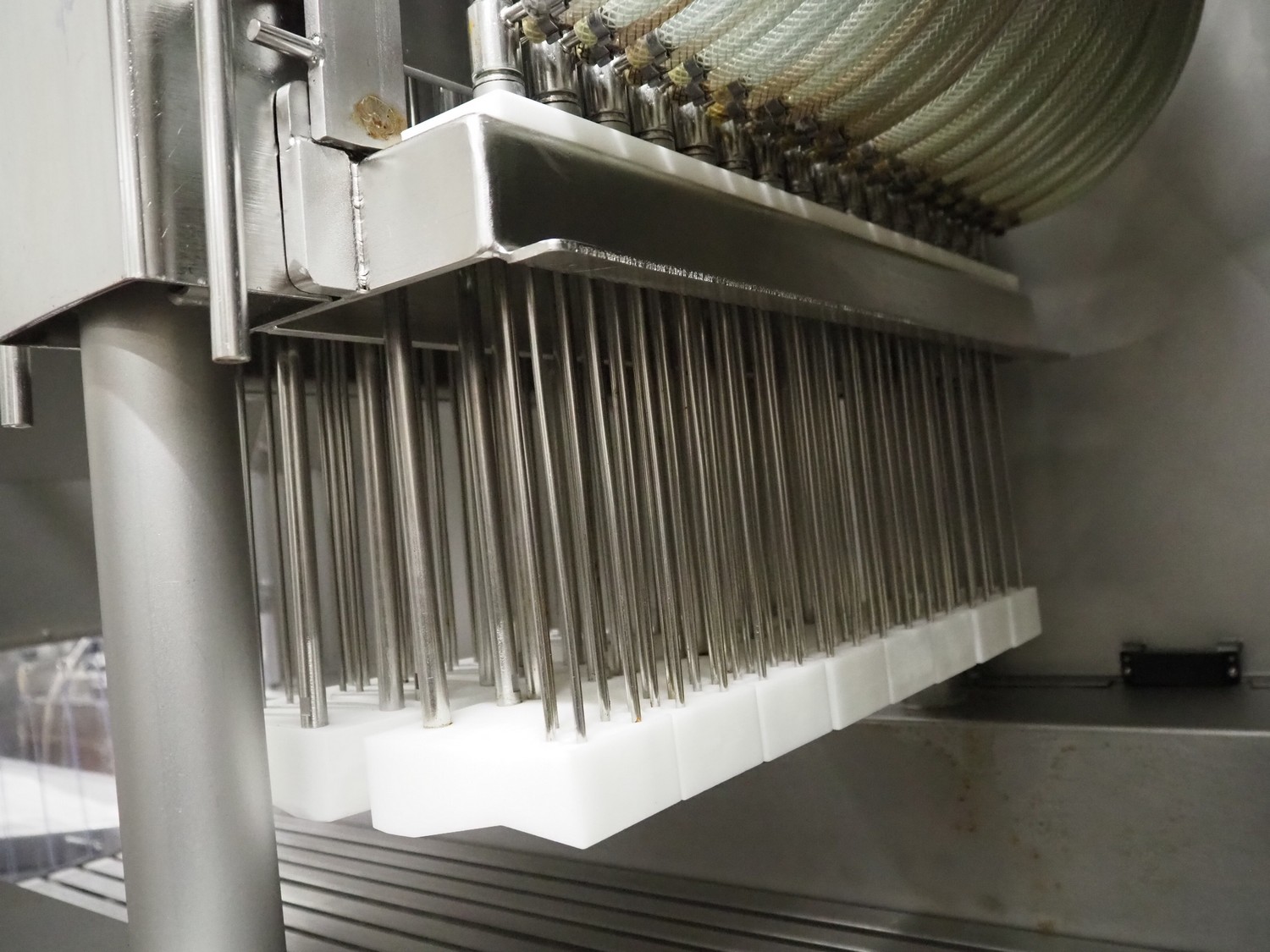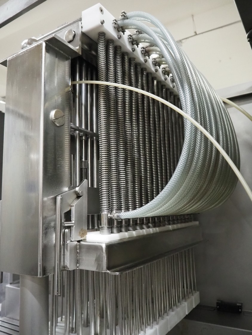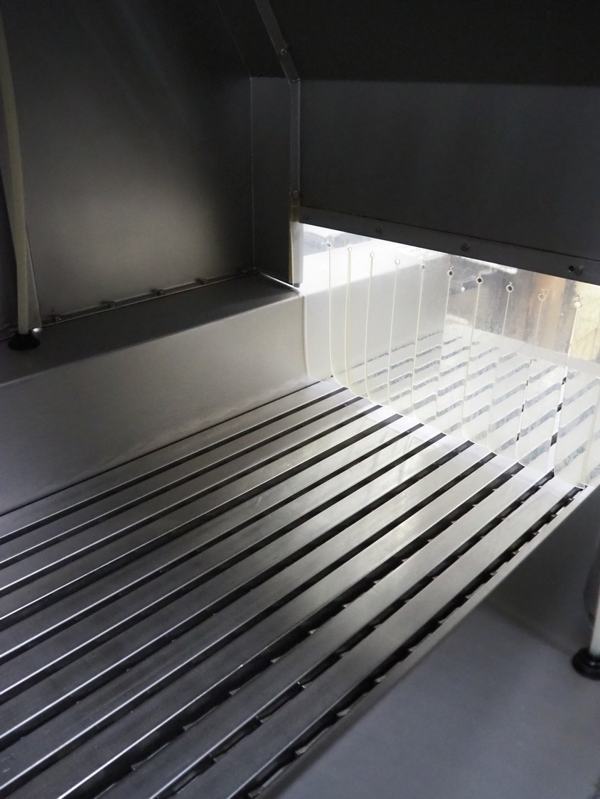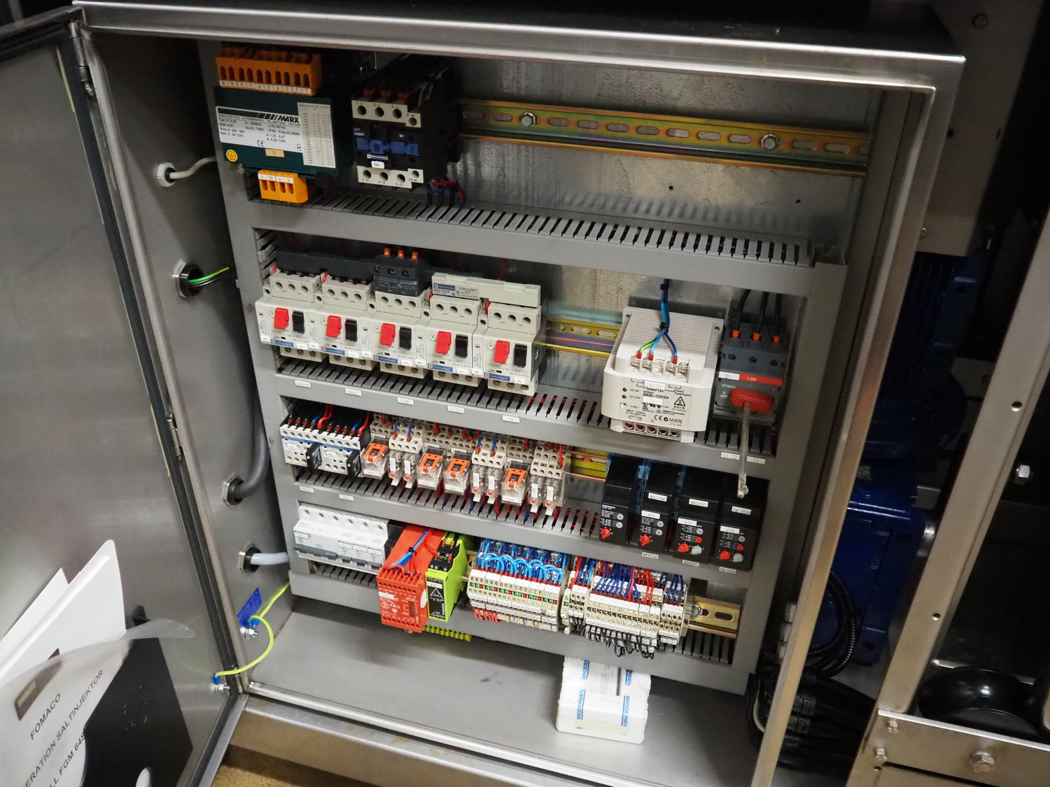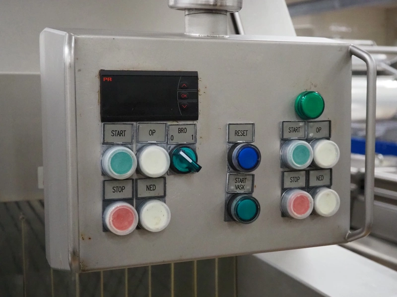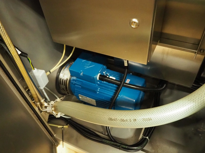 Fomaco injector, model: FGM 64 SW, machine number: 8187, year of construction: 2000, 400 V, 3 Ph, 50 Hz, 23/32 A, s/s walking beam, beam width: 550 mm, working width: 530 mm, total dimensions: 2250 mm x 840 mm x 2200 mm. Including mobile filter tub, type: PFS 5/225 08, machine number: 8189 2000, dimensions: 1700 mm x 650 mm x 630 mm.