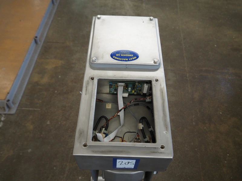 Mobile pipeline metal detector, diameter clearance: 80 mm, total dimensions: 600 mm x 450 mm x 1500 mm. Incomplete, technical condition unknown.