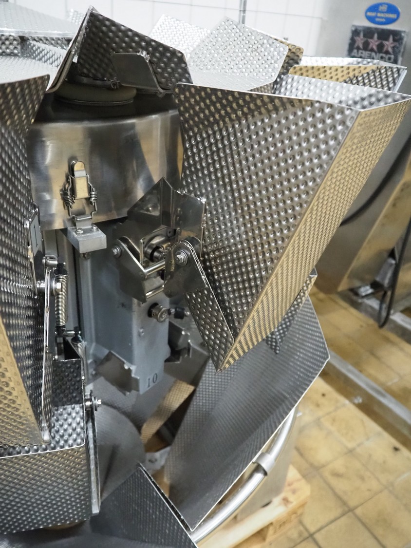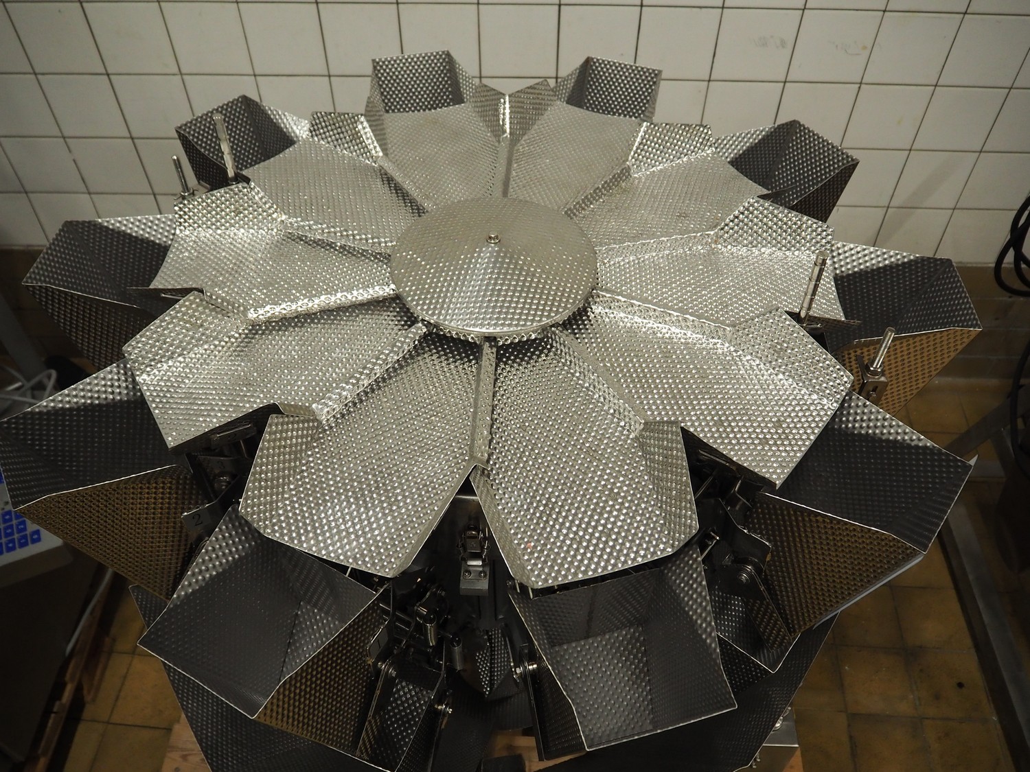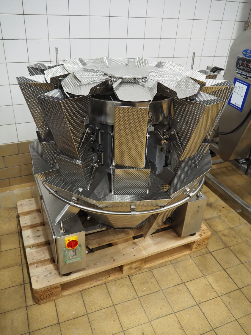 10 heads multihead weigher, number: AC--BB100607111, baskets: 130 mm x 120 mm x 230 mm, total dimensions: 1100 mm x 1100 mm x 1150 mm.