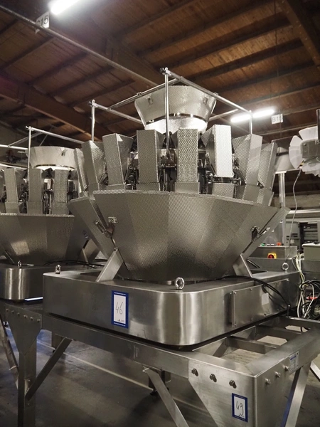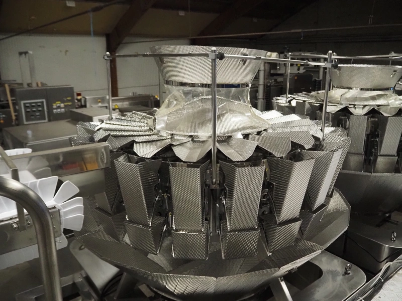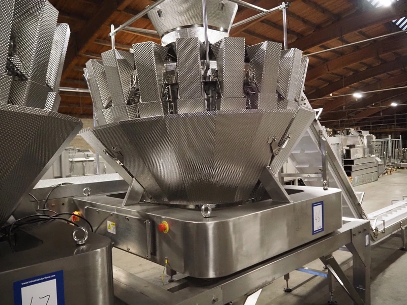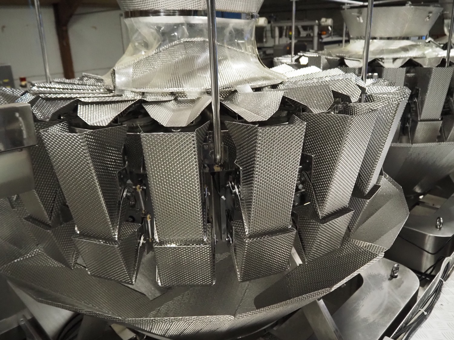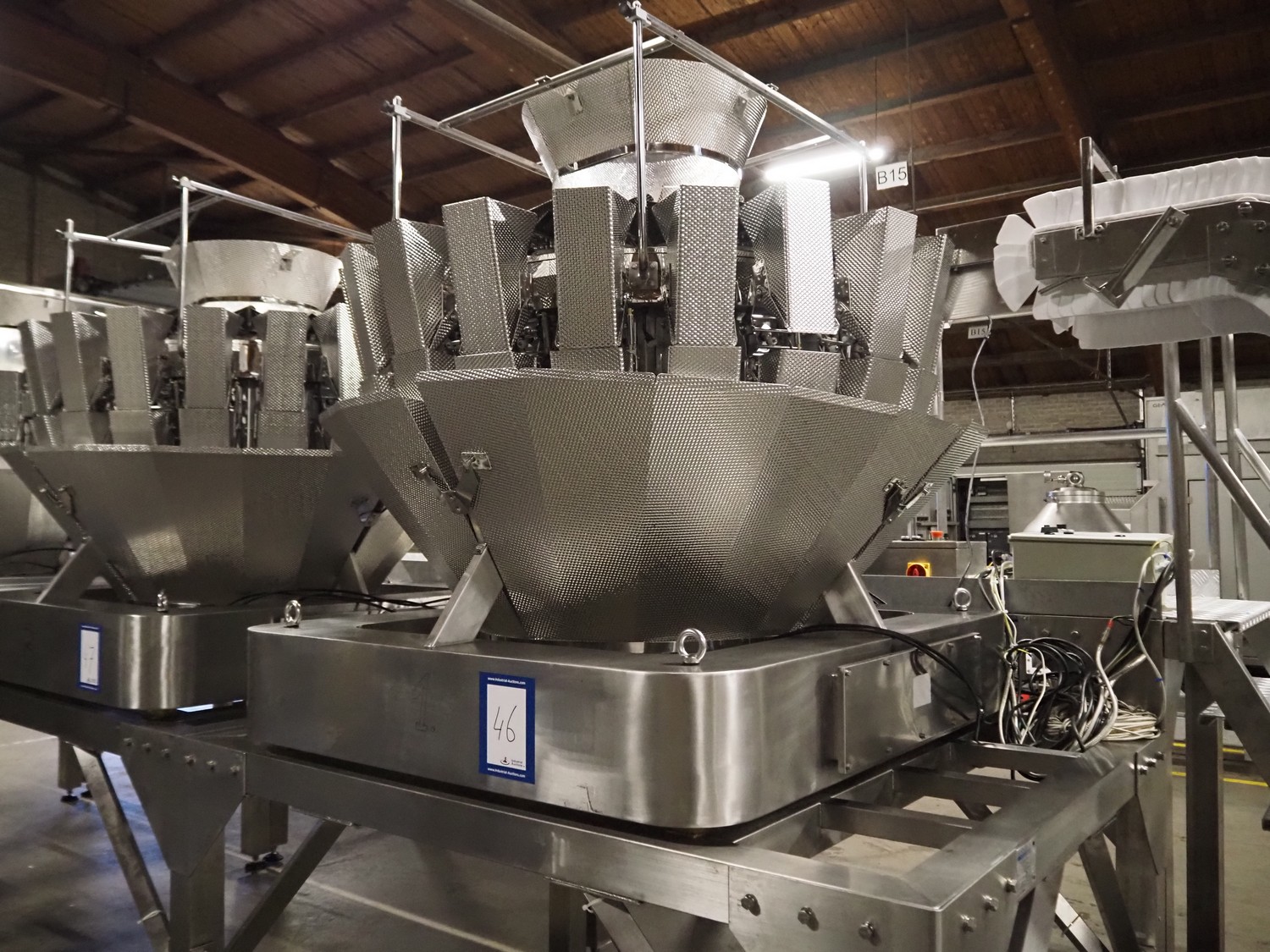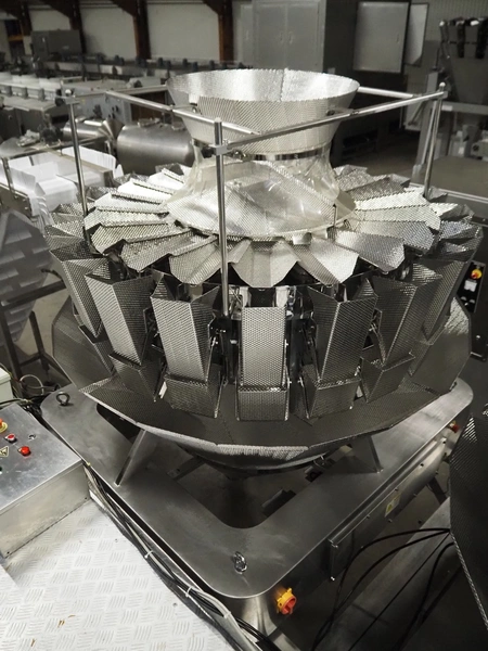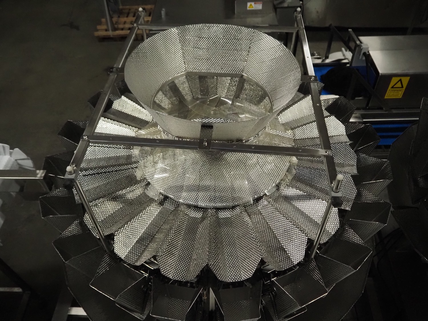20 heads multihead weigher, dimensions: 1600 mm x 2000 mm x 2000 mm.