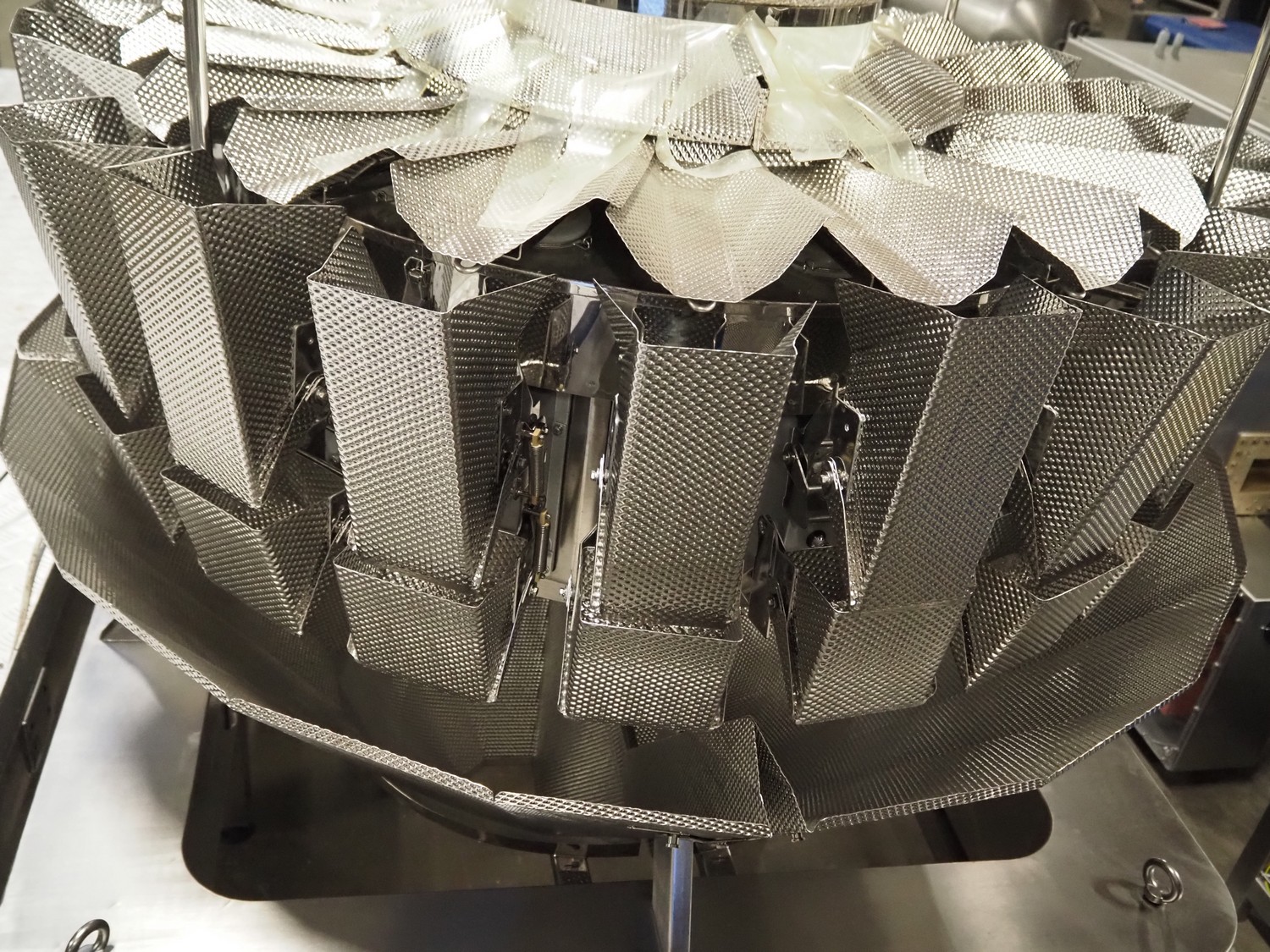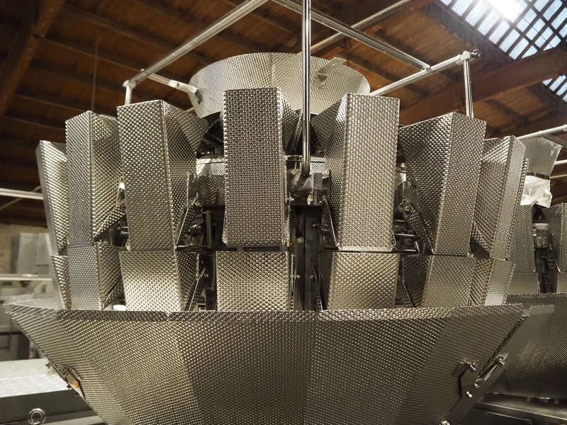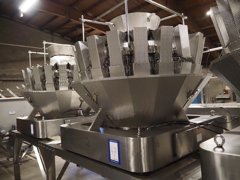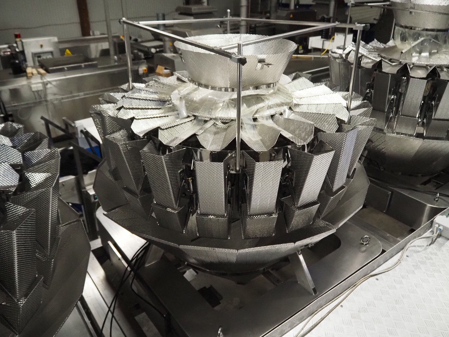 20 heads multihead weigher, dimensions: 1600 mm x 2000 mm x 2000 mm.