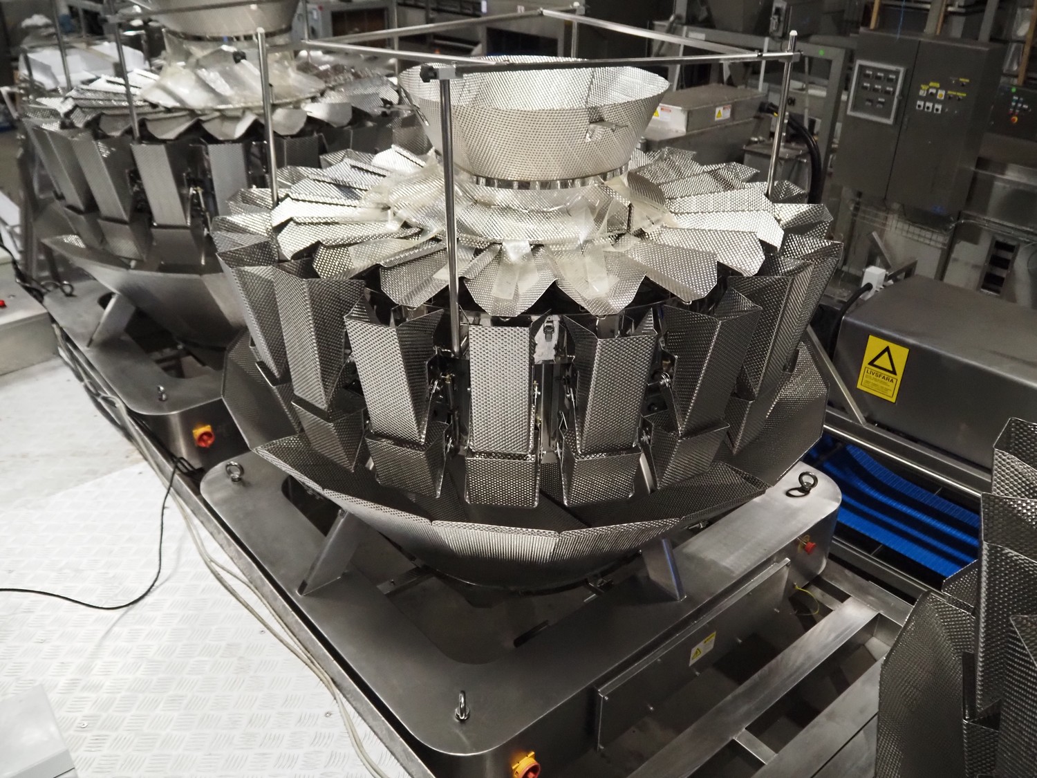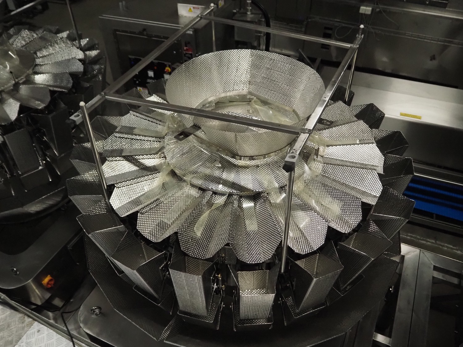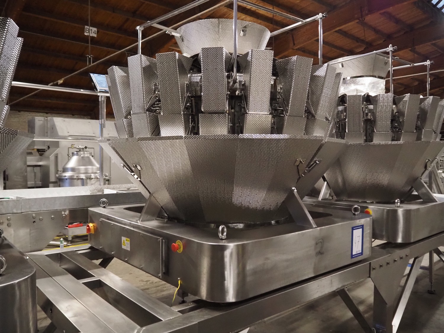 20 heads multihead weigher, dimensions: 1600 mm x 2000 mm x 2000 mm.