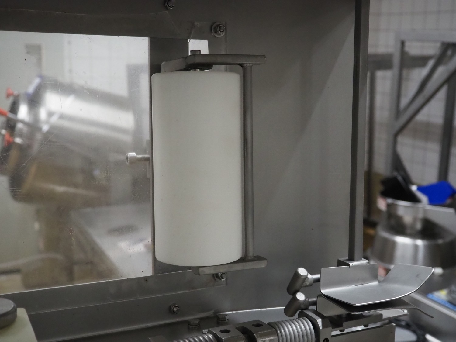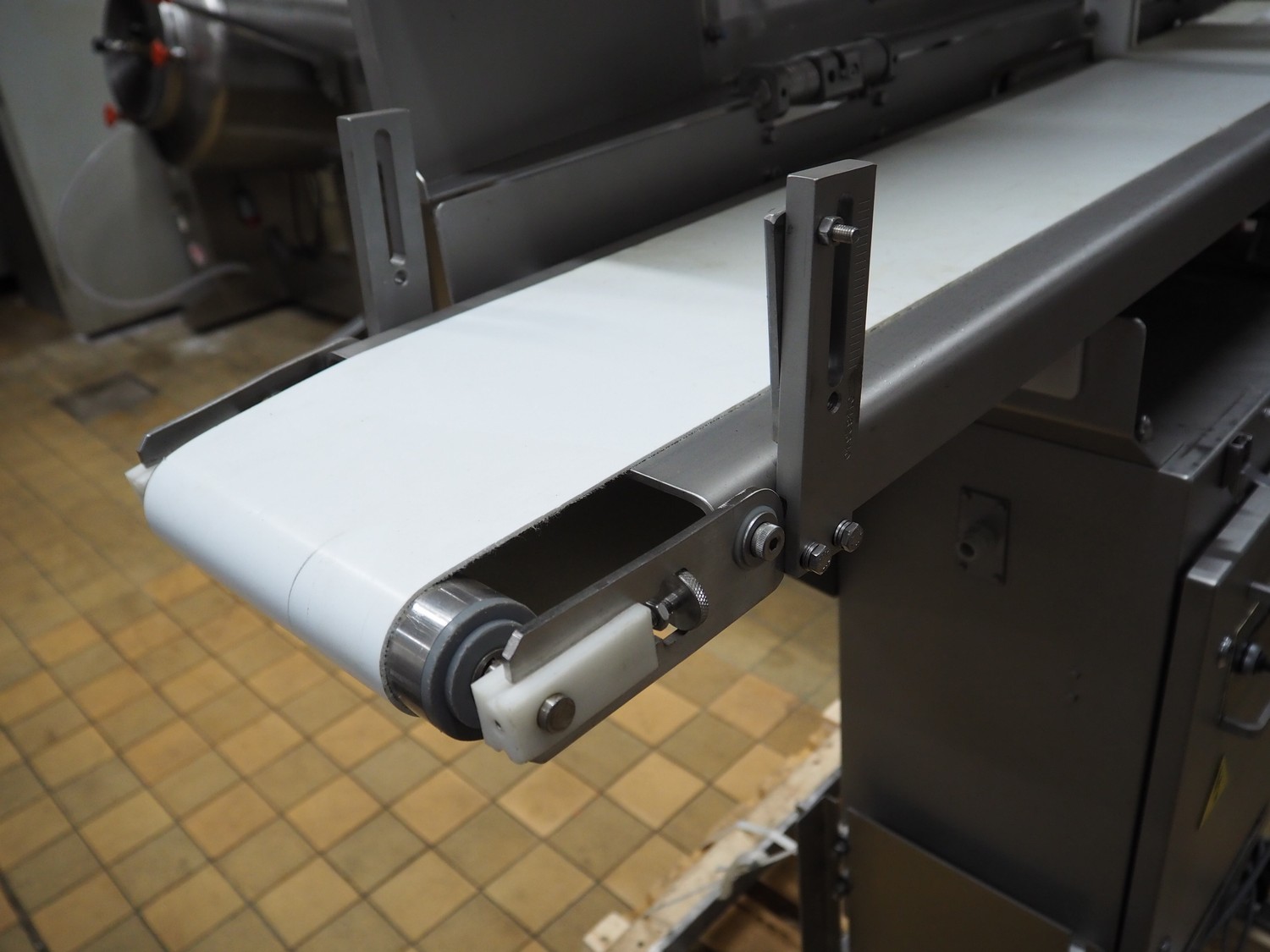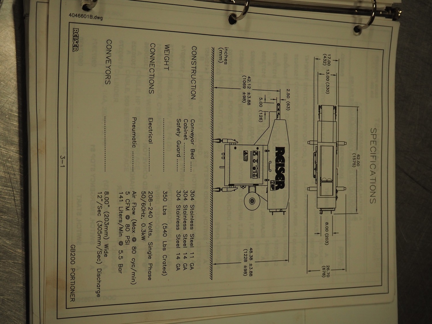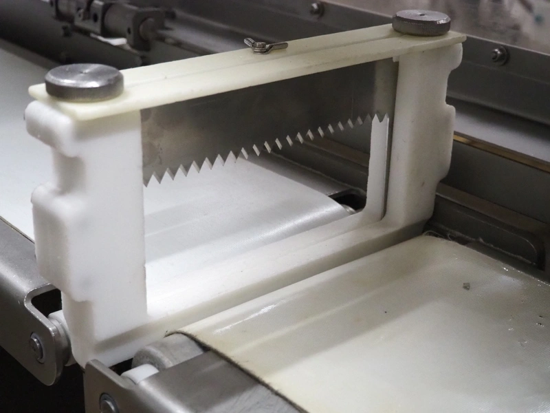 Ross Industries, INC. portion cutter with paper interleaver, model: GB 200, serial number: 390, year of construction: 03/2004, 208/240 V, 1 Ph, 60 Hz, 15/1.5/1.0 A, plastic belt, belt width: 200 mm, working width: 200 mm, total dimensions: 1480 mm x 900 mm x 1400 mm.