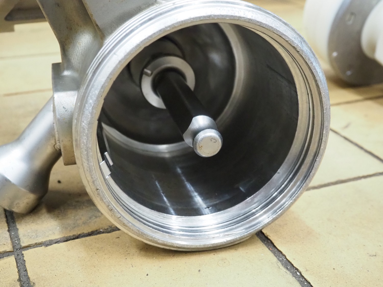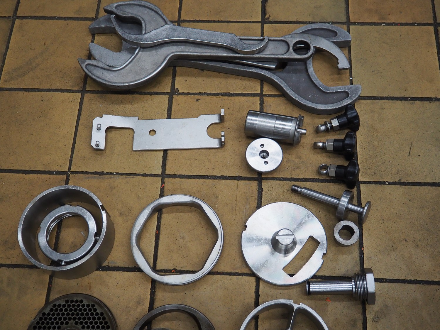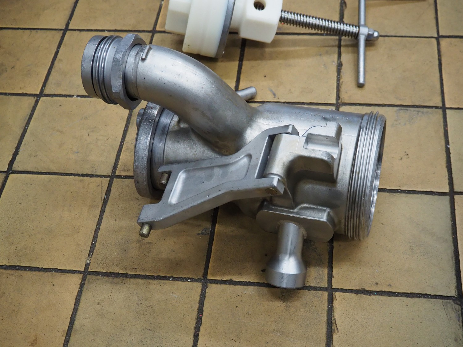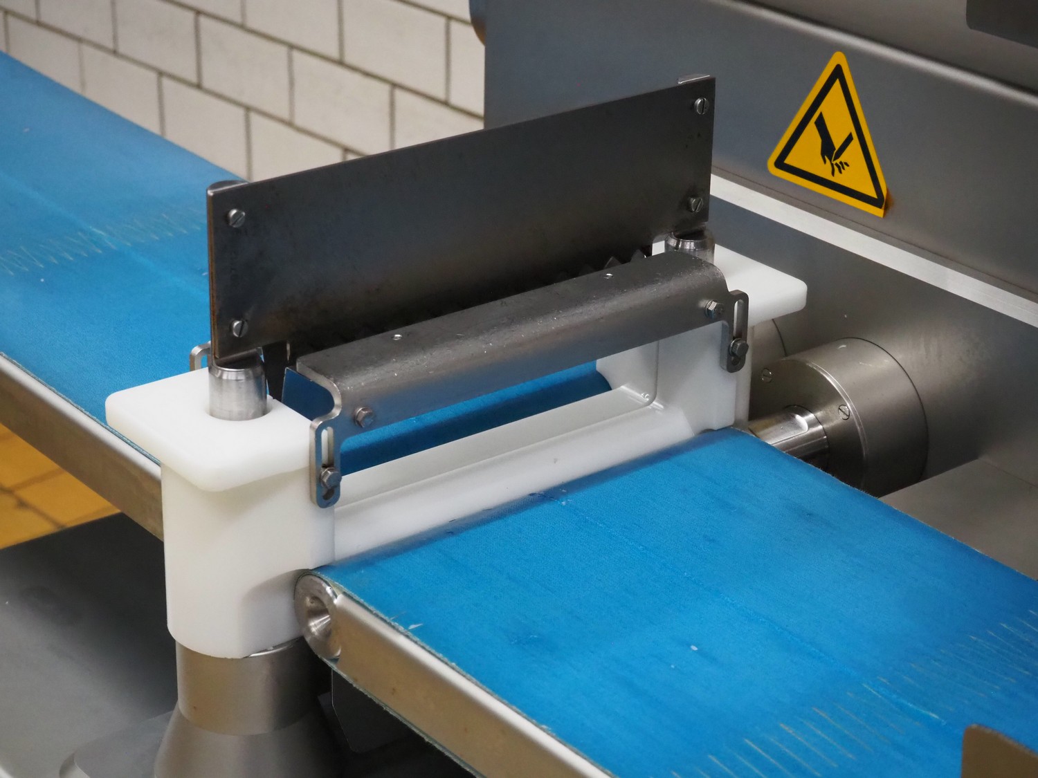 Handtmann mobile portioning machine, type: GMD99-2, number: 45813, year of construction: 2021, weight: 239 kg, working width: 5250 mm, plastic belt, belt width: 250 mm, total dimensions: 1400 mm x 680 mm x 1500 mm. Including Handtmann grinding head, type: 93-3, number: 14303414.