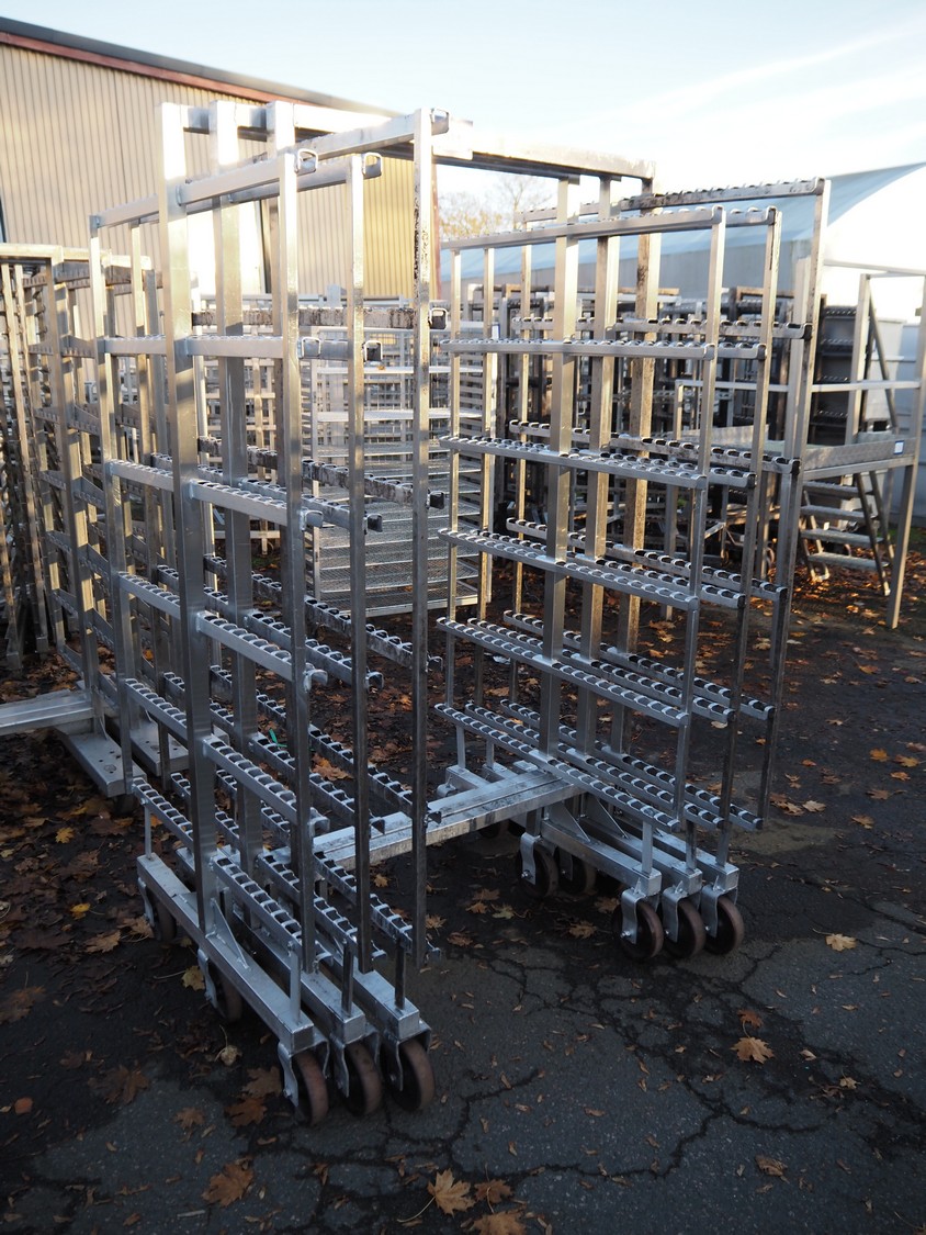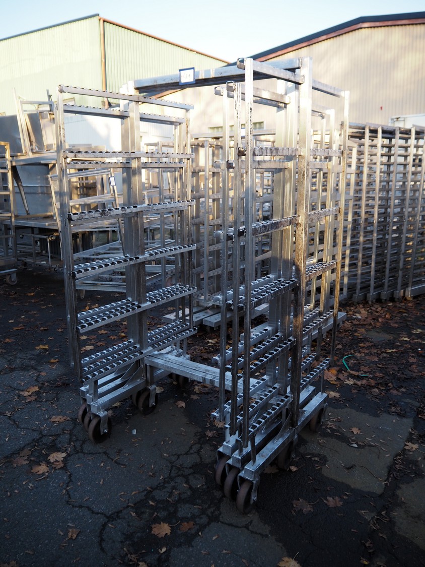 3 s/s smoke trolleys, 6 floors each, dimensions: (3x) 1050 mm x 980 mm x 1970 mm.