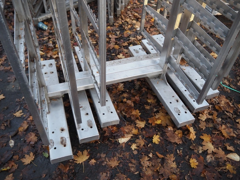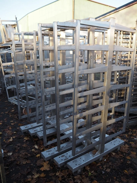3 s/s smoke trolleys, 6 floors each, dimensions: (3x) 1000 mm x 1000 mm x 1870 mm.