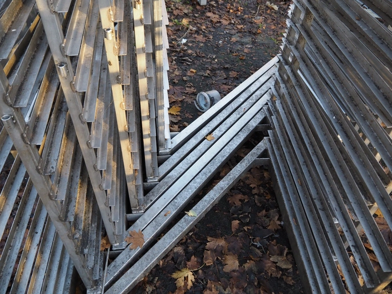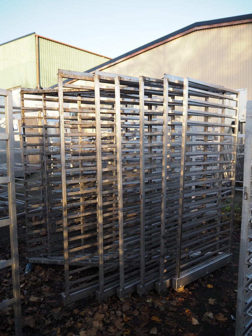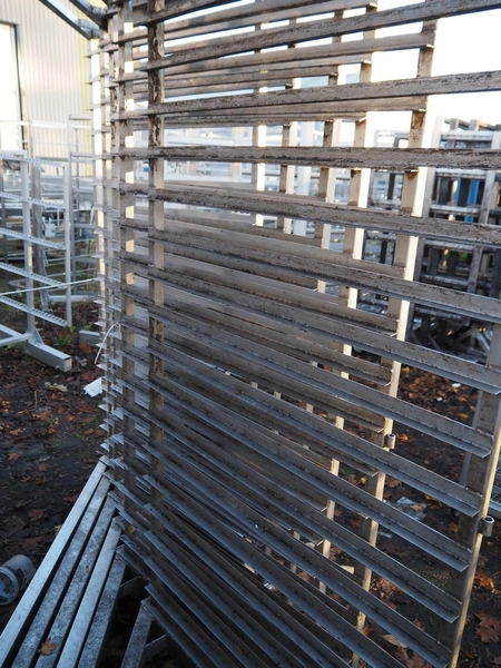 6 s/s Z-shaped smoke trolleys, 20 floors each, dimensions: (6x) 1010 mm x 1000 mm x 1950 mm.