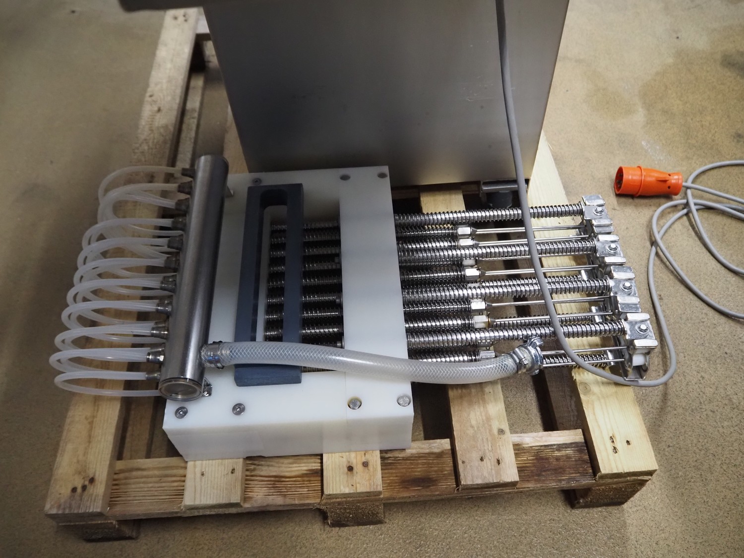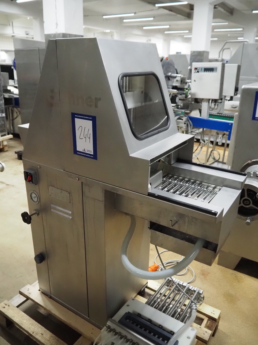 Suhner AG tenderizer/injetcor, type: WS 20 T, machine number: 9220629, 380 V, 50 Hz, 3.5 A, s/s walking beam, beam width: 290 mm, working width: 260 mm, total dimensions: 1250 mm x 500 mm x 1650 mm. Including injecting needles.
