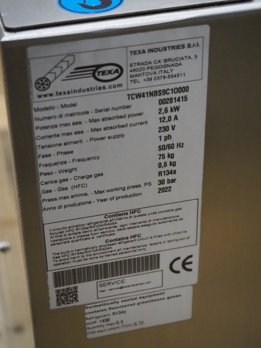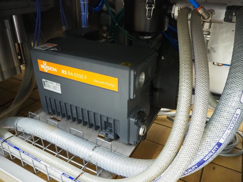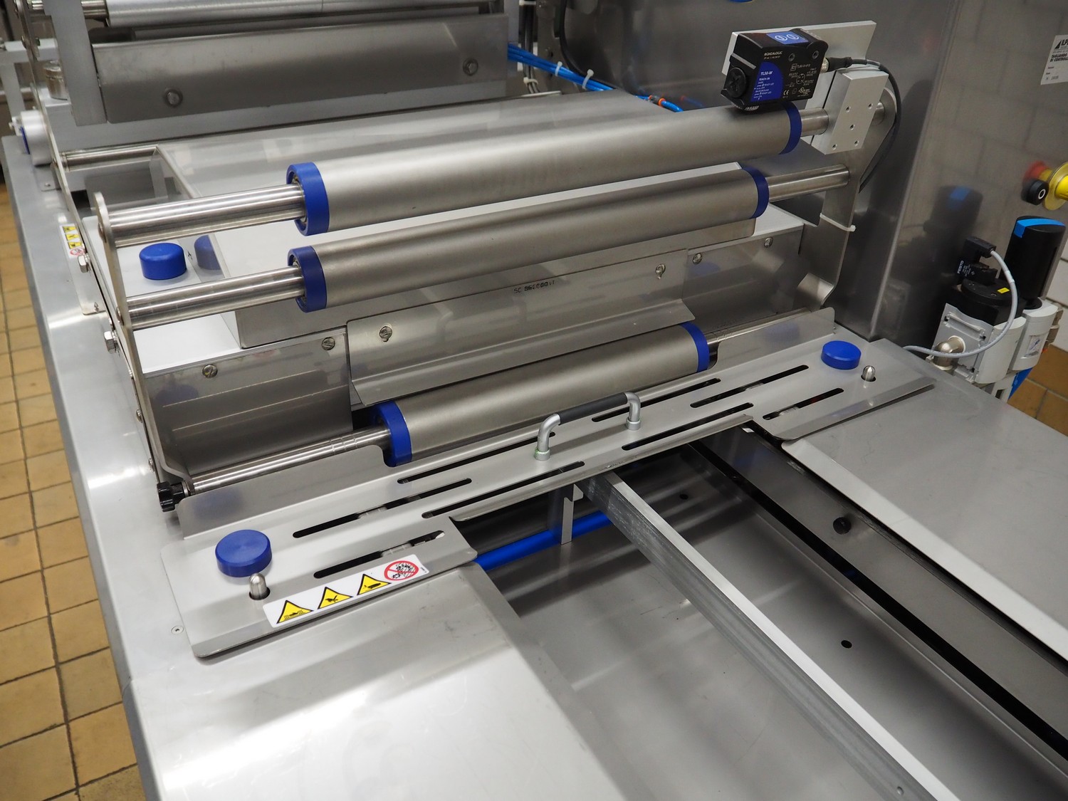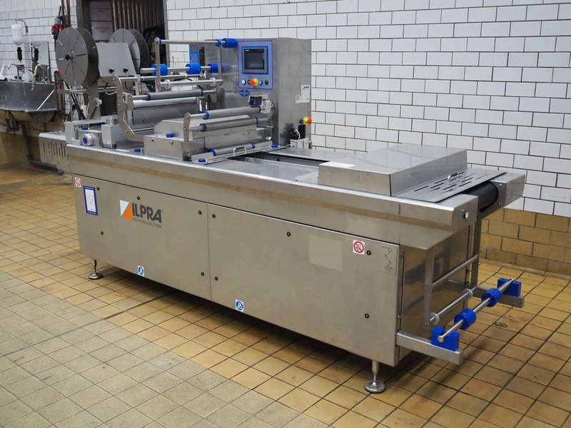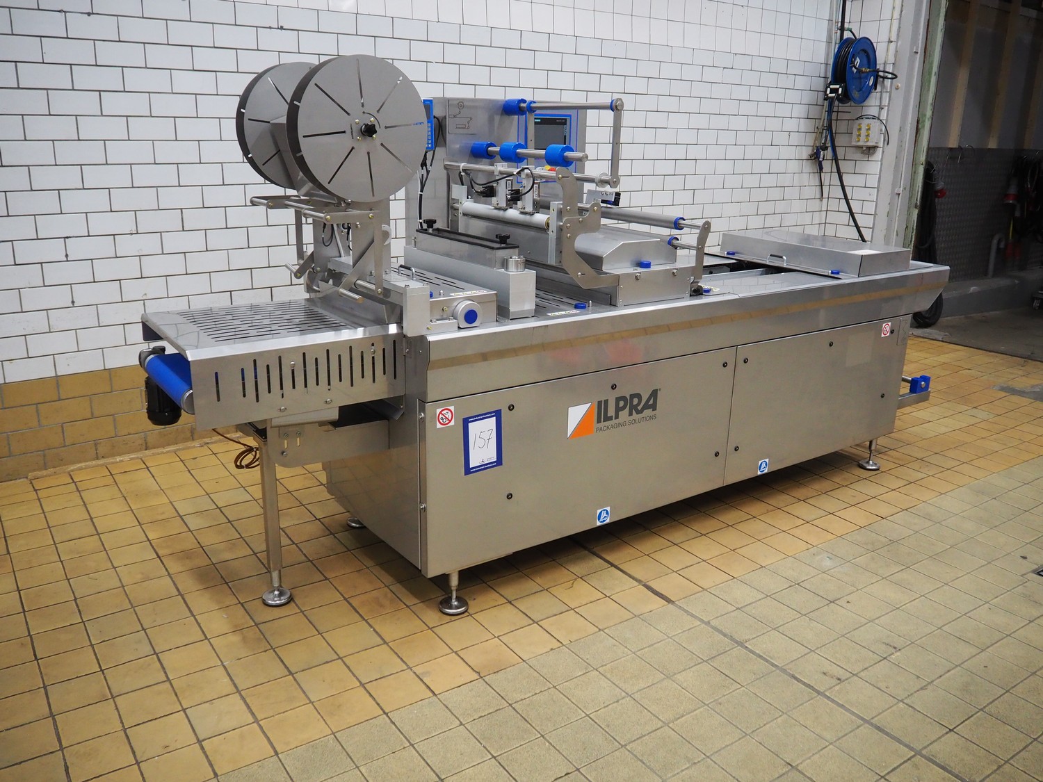 Ilpra S.p.A. thermoformer, model: speedyform, serial machine: TMF, serial number: F570, year of construction: 2022, 400 V, dyes: (2x) 195 mm x 145 mm, belt width: 320 mm, index: 355, plastic belt, belt width: 400 mm, film width: 365, Busch vacuum pump, pump type: RA 0100 F 5R3, serial number: DEM121381143, capacity: 100 m³ per hour, total dimensions: 3480 mm x 1200 mm x 1810 mm. Including: Texa cooling unit, model: TCW41NBS9C10000, serial number: 00281415, year of construction: 2022, 230 V, 1 Ph, 50/60 Hz, 12.0 A, 2.6 kW, weight: 75 kg, gas: R134a, maximum working press: 30 bar, dimensions cooling unit: 900 mm x 450 mm x 550, Pallet with 10 film rolls, film width: 365, dimensions pallet: 1200 mm x 800 mm x 900 mm.