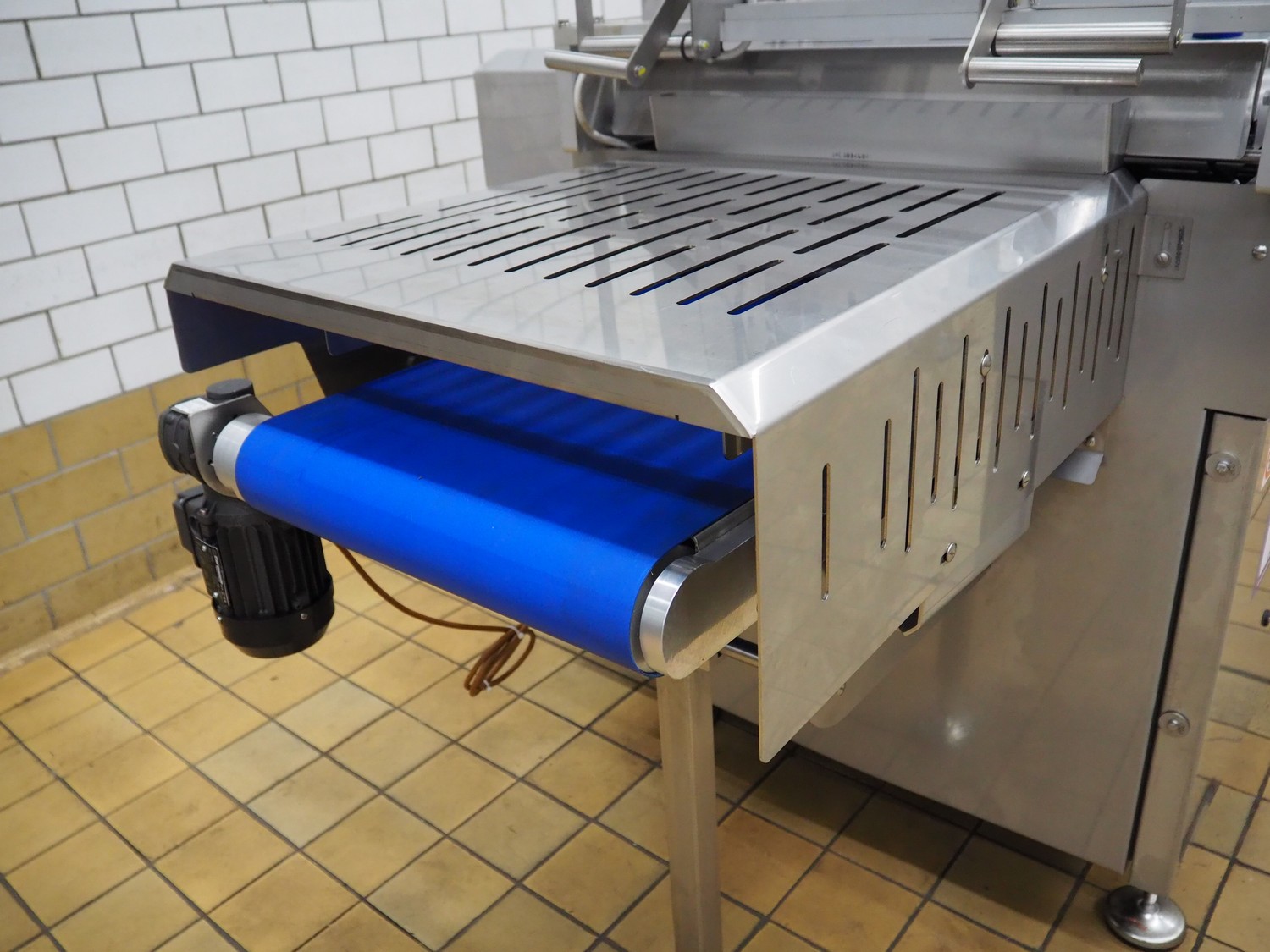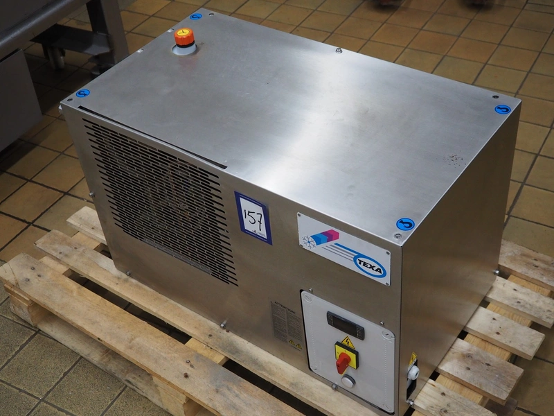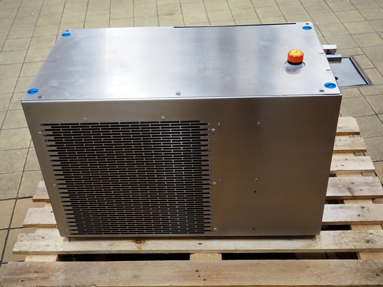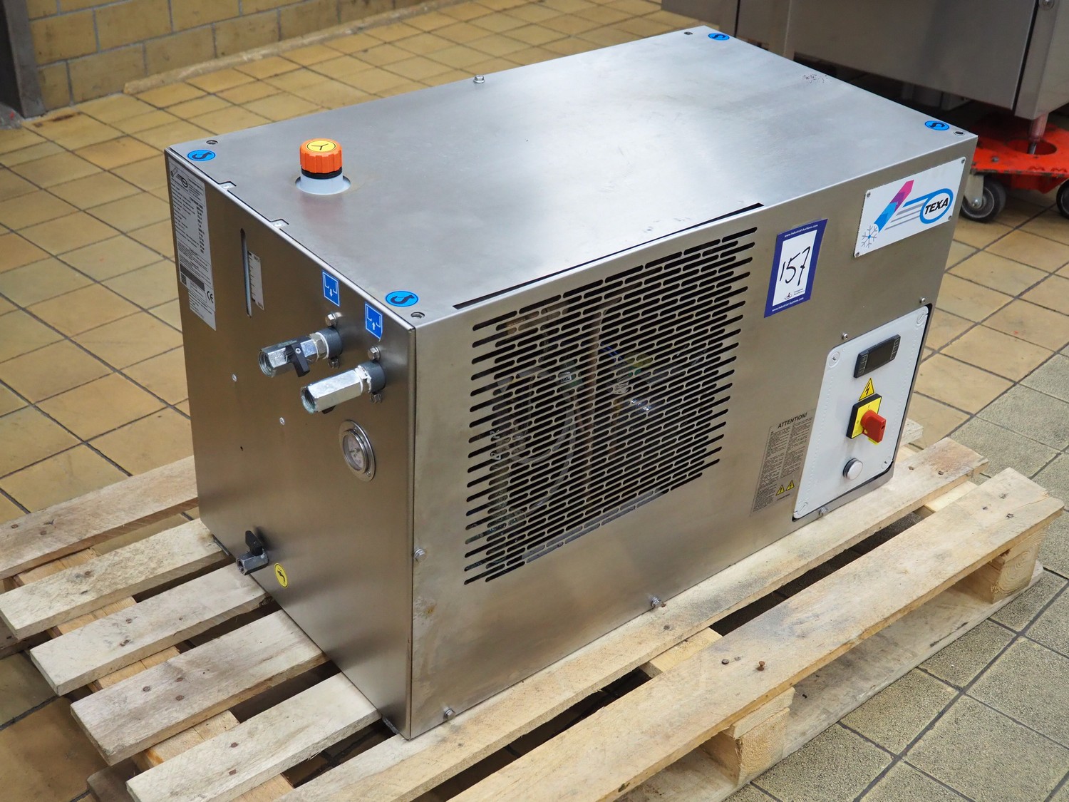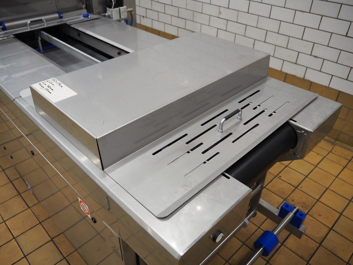Ilpra S.p.A. thermoformer, model: speedyform, serial machine: TMF, serial number: F570, year of construction: 2022, 400 V, dyes: (2x) 195 mm x 145 mm, belt width: 320 mm, index: 355, plastic belt, belt width: 400 mm, film width: 365, Busch vacuum pump, pump type: RA 0100 F 5R3, serial number: DEM121381143, capacity: 100 m³ per hour, total dimensions: 3480 mm x 1200 mm x 1810 mm. Including: Texa cooling unit, model: TCW41NBS9C10000, serial number: 00281415, year of construction: 2022, 230 V, 1 Ph, 50/60 Hz, 12.0 A, 2.6 kW, weight: 75 kg, gas: R134a, maximum working press: 30 bar, dimensions cooling unit: 900 mm x 450 mm x 550, Pallet with 10 film rolls, film width: 365, dimensions pallet: 1200 mm x 800 mm x 900 mm.