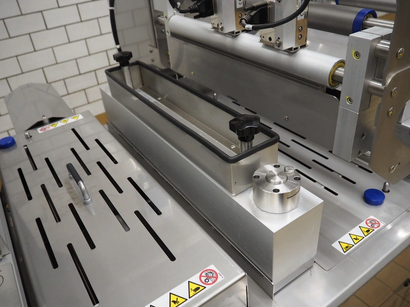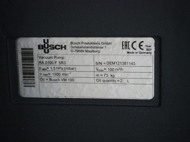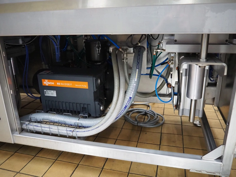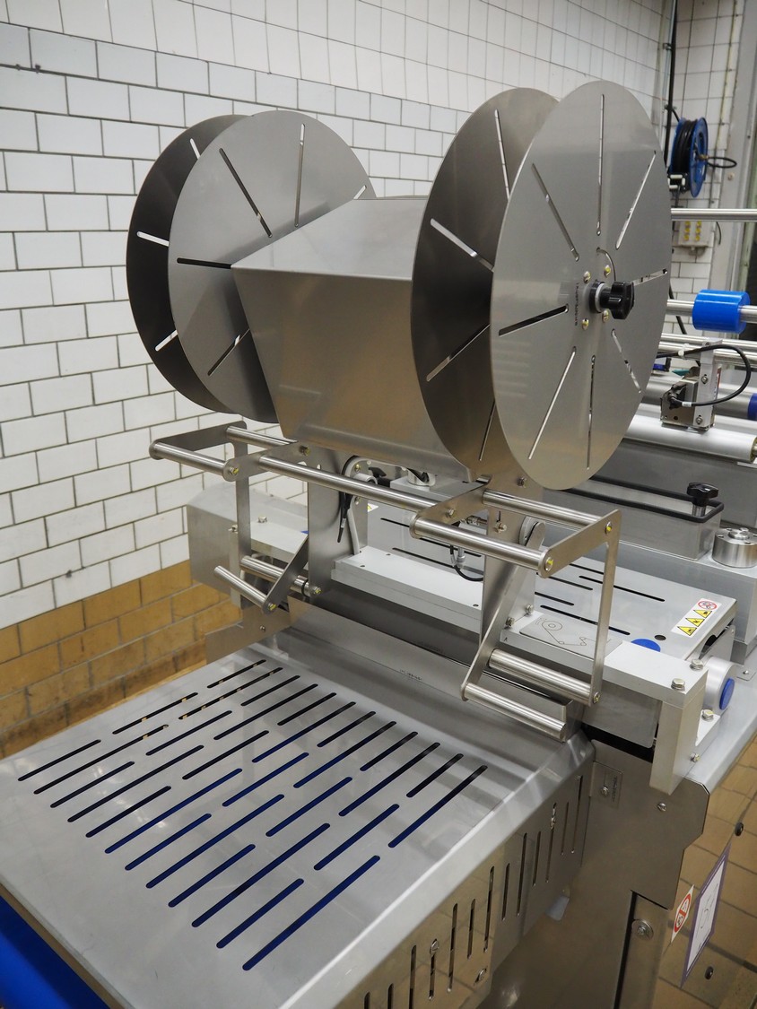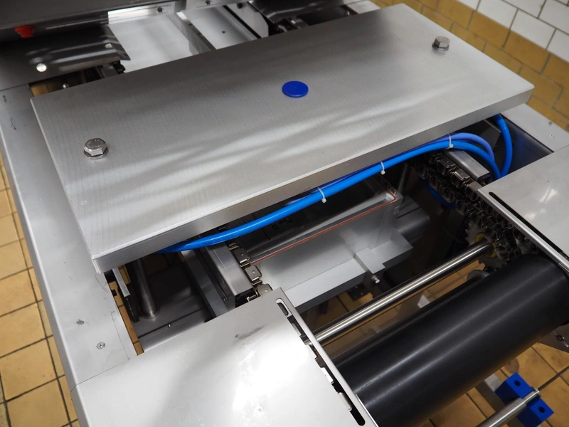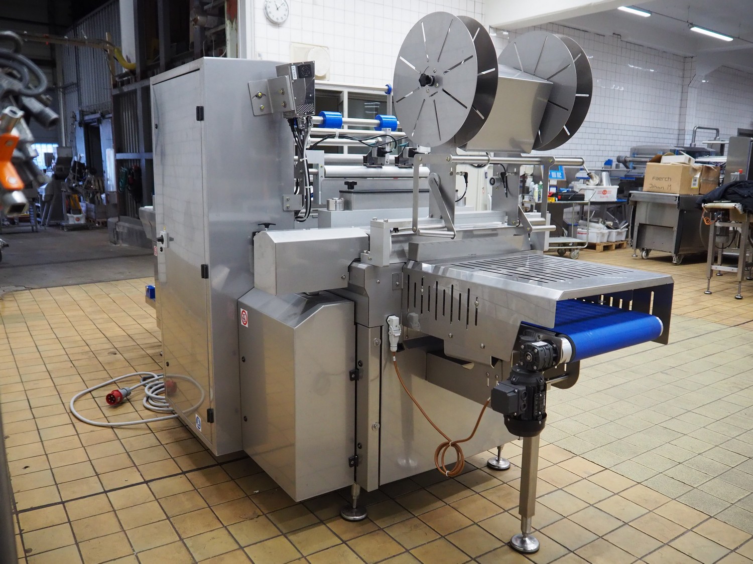 Ilpra S.p.A. thermoformer, model: speedyform, serial machine: TMF, serial number: F570, year of construction: 2022, 400 V, dyes: (2x) 195 mm x 145 mm, belt width: 320 mm, index: 355, plastic belt, belt width: 400 mm, film width: 365, Busch vacuum pump, pump type: RA 0100 F 5R3, serial number: DEM121381143, capacity: 100 m³ per hour, total dimensions: 3480 mm x 1200 mm x 1810 mm. Including: Texa cooling unit, model: TCW41NBS9C10000, serial number: 00281415, year of construction: 2022, 230 V, 1 Ph, 50/60 Hz, 12.0 A, 2.6 kW, weight: 75 kg, gas: R134a, maximum working press: 30 bar, dimensions cooling unit: 900 mm x 450 mm x 550, Pallet with 10 film rolls, film width: 365, dimensions pallet: 1200 mm x 800 mm x 900 mm.