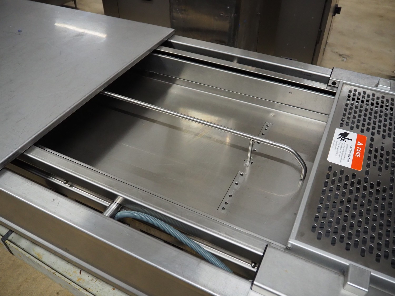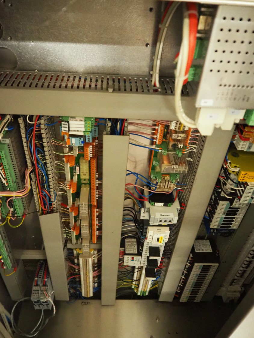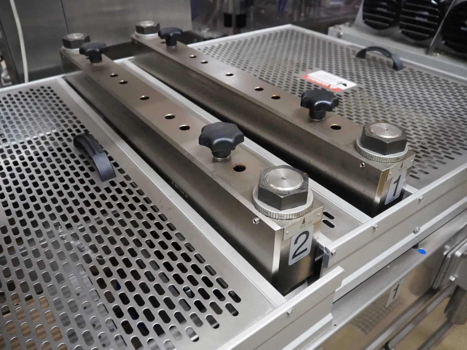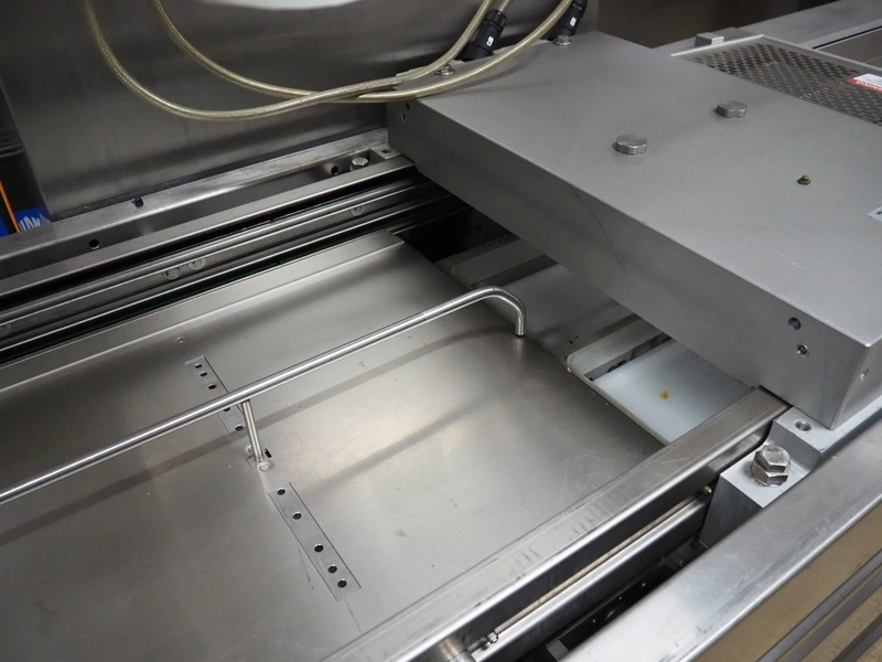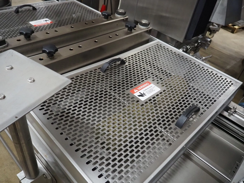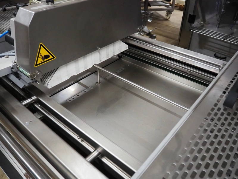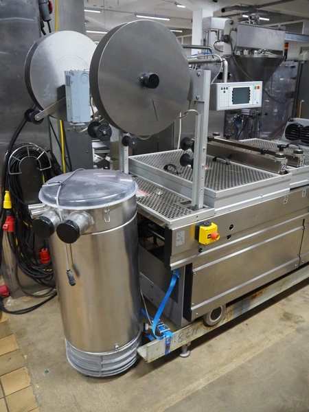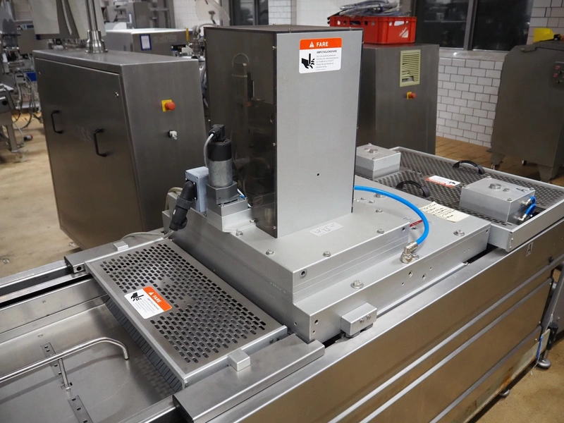 Multivac thermoformer, type: R530, number: 3673, year of construction: 2004, 400 V, 3 Ph, 50 Hz, 41 A, 15.5 kW, film width: 622 mm, dye: (2x) 367 mm x 265 mm, MR Etikettiertechnik labeller and 2 Busch vacuum pumps, type: (1x) WV 1000 B 001 KDRO, year of construction: 2003, total dimensions: 10200 mm x 1250 mm x 2000 mm. Including film unwinding device, dimensions: 1500 mm x 1500 mm x 1800 mm.