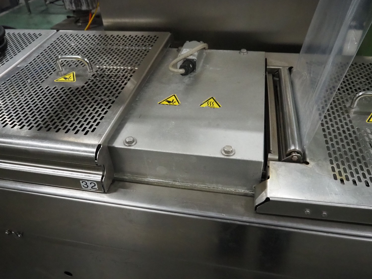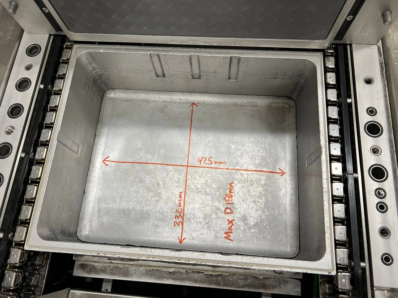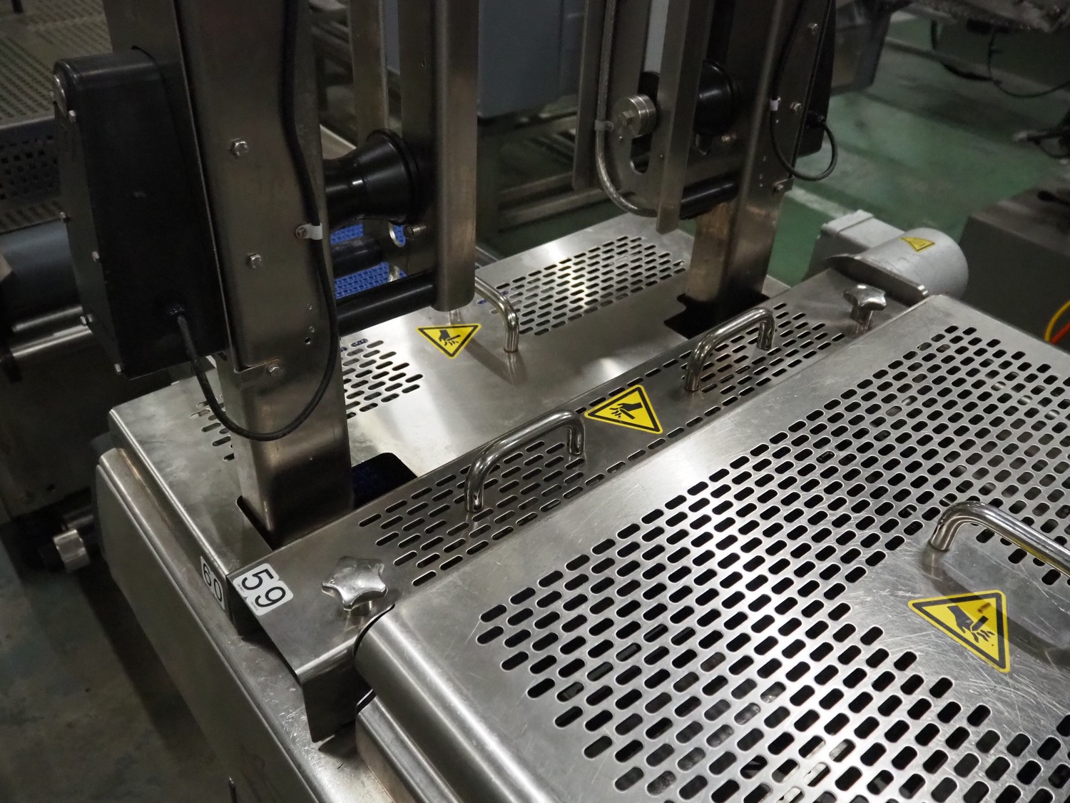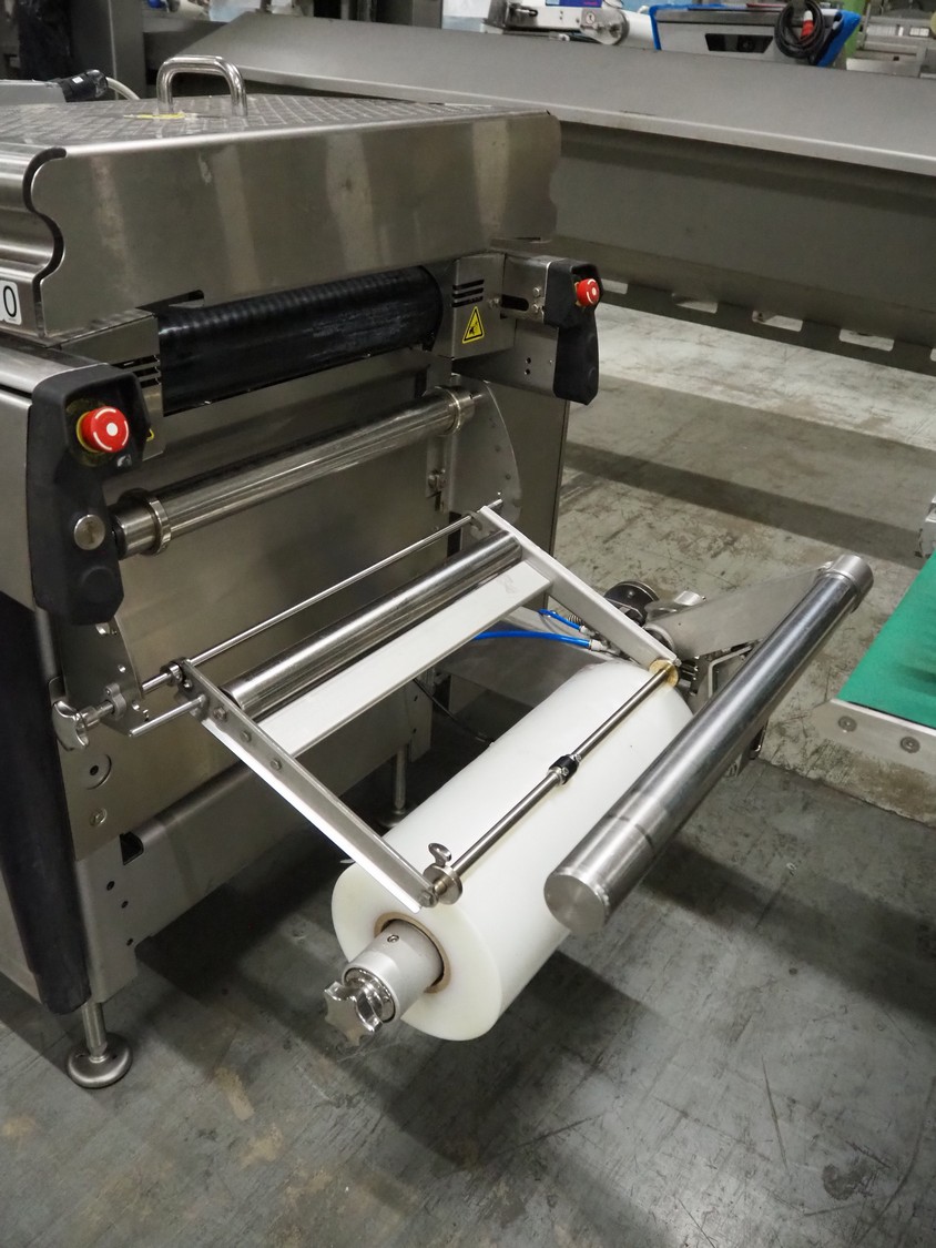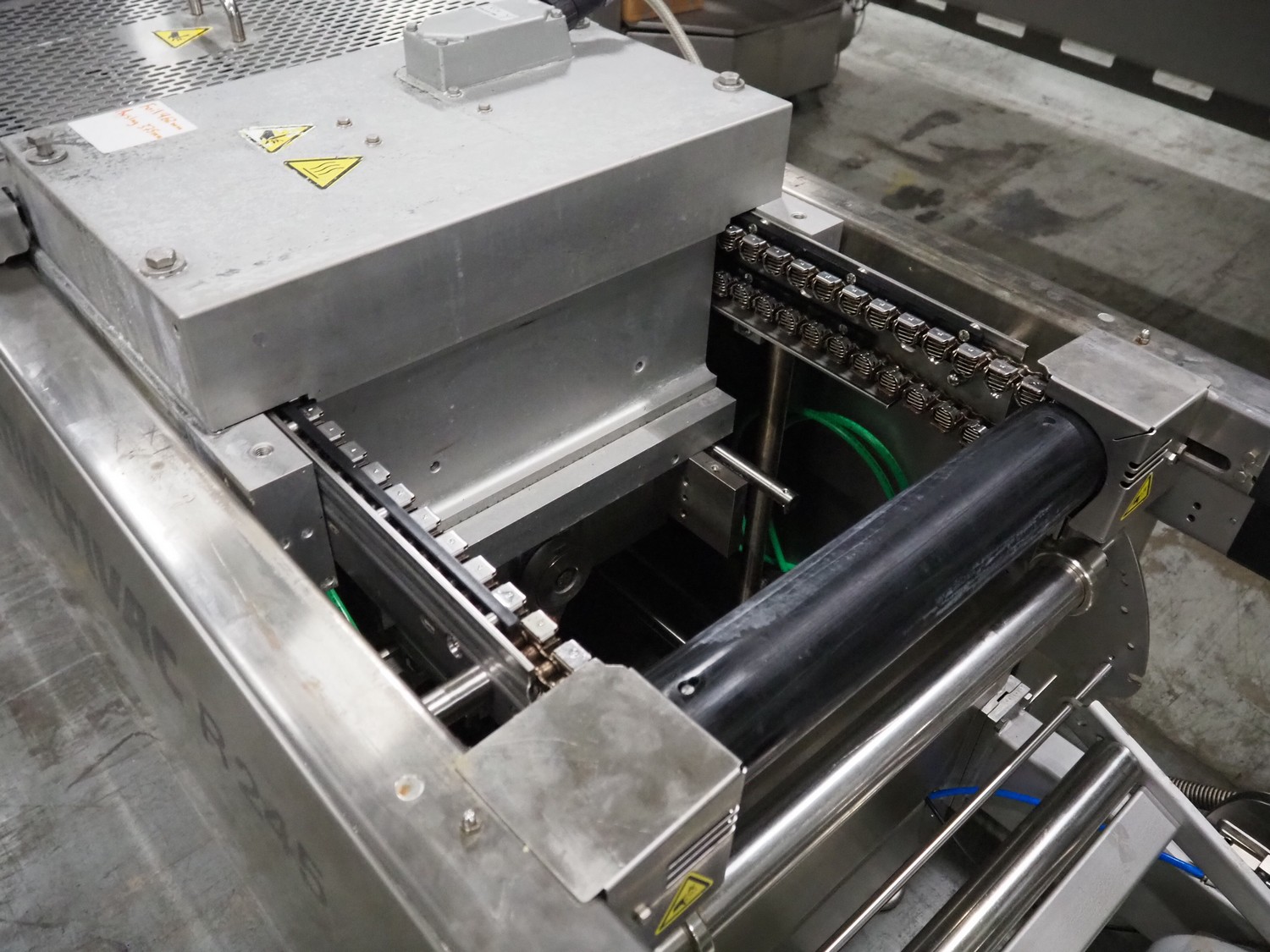 Multivac thermoformer, type: R245, serial number: 228342, year of construction: 2016, 400/230 V, 3 Ph, 50 Hz, 36/50 A, 14 kW, film width: 460 mm, dye: 322 mm x 425 mm, plastic mesh outfeed belt, belt width: 430 mm, Busch vacuum pump, type: RA 0100 F 503, capacity: 100 m³ per hour, total dimensions: 6400 mm x 1150 mm x 2350 mm, s/s trolley with parts, dimensions dye: (3x) 332 mm x 131mm, (2x) 332 mm x 205 mm, dimensions trolley: 1000 mm x 800 mm x 1400 mm.
