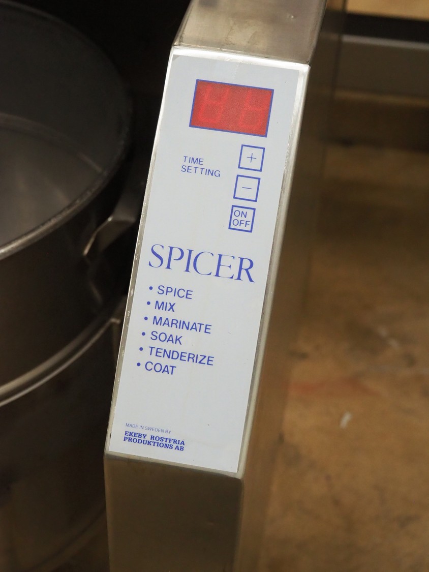 Ekeby Rostfria prod. AB tumbler, 380 V, 3 Ph, 50 Hz, dimensions tub: Ø 415 mm x 430 mm, total dimensions: 760 mm x 710 mm x 1080 mm.