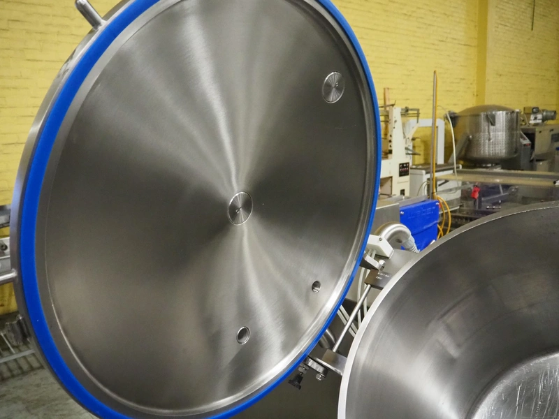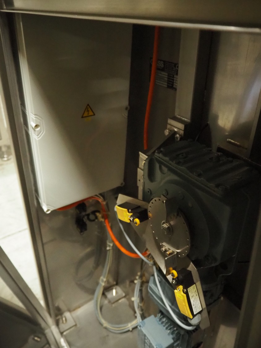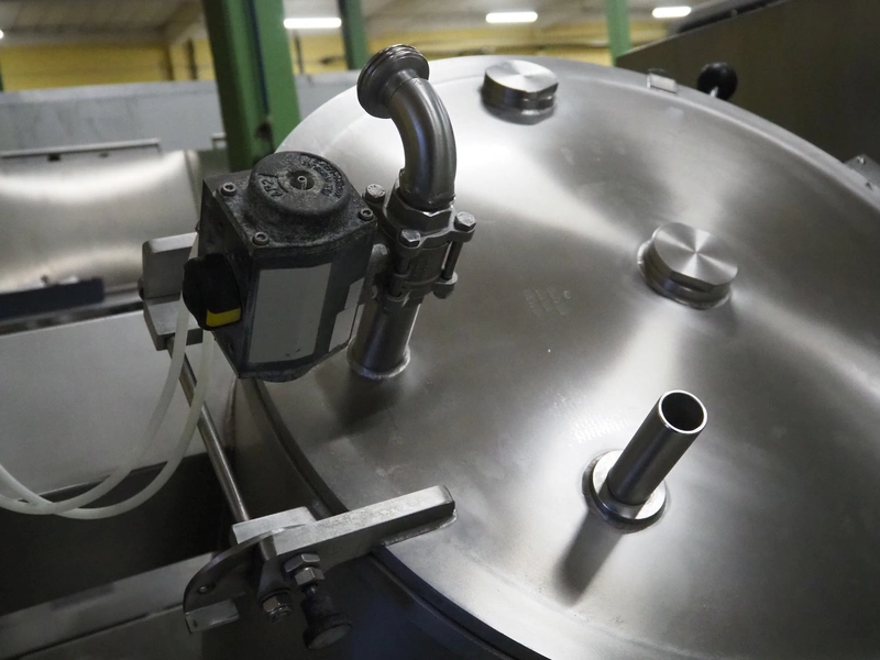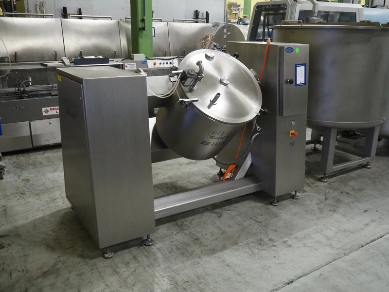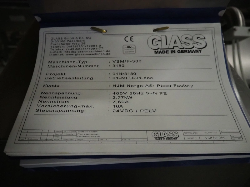 Glass GmbH tiltable vacuum tumbler, type: VSM/F 300, machine number: 3180, year of construction: 2009, 400 V, 50 Hz, 7.60 A, 2.77 kW, volume: 300 liter, dimensions: 1800mm x 1100 mm x 1800 mm. Without vacuum pump.