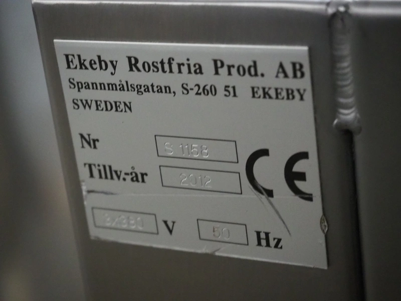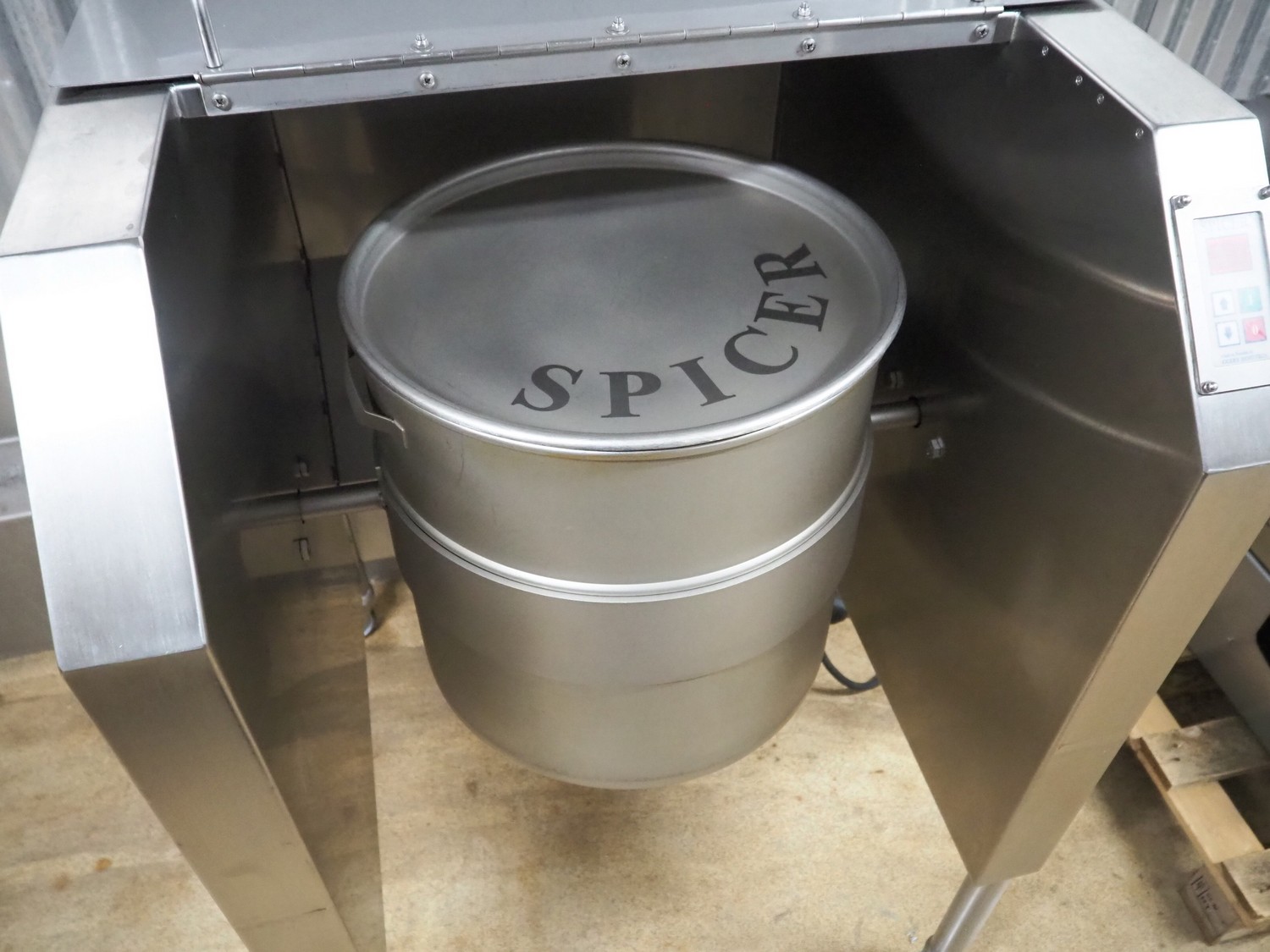 Ekeby Rostfria Prod. AB mobile tumbler for spices, model: spicer, number: S 1158, year of construction: 2012, 380 V, 3 Ph, 50 Hz, s/s tub, inside dimensions: Ø 410 mm x 400 mm, total dimensions: 720 mm x 800 mm x 1100 mm.