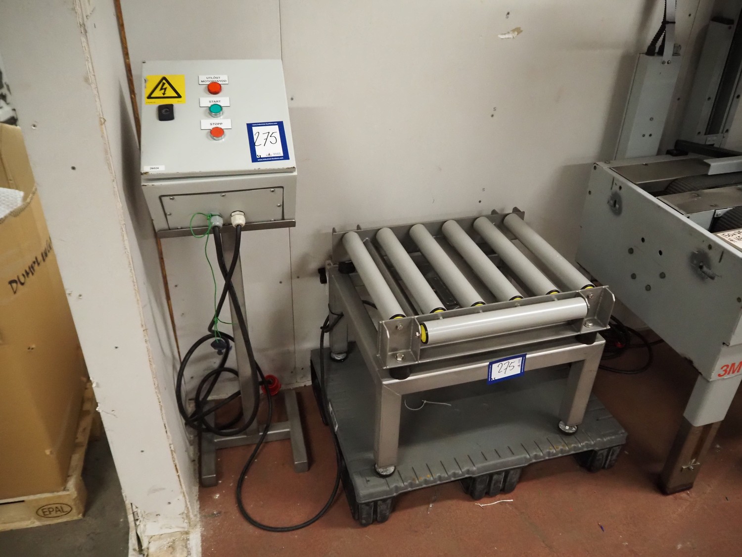 S/s weighing conveyor, plastic rollers, roller width: 400 mm, total dimensions: 600 mm x 580 mm x 480 mm. Including indicator, dimensions: 400 mm x 300 mm x 1100 mm.
