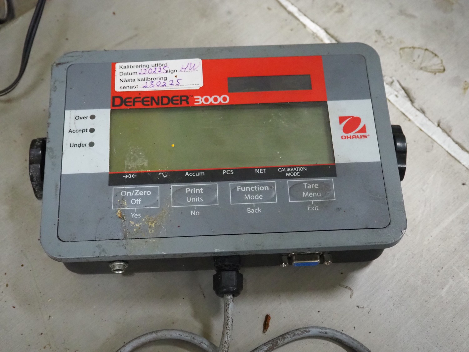 Ohaus weighing scale with indicator, type: Defender 3000, dimensions: 500 mm x 600 mm x 150 mm.