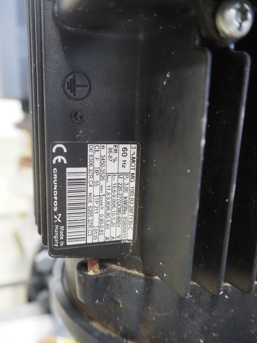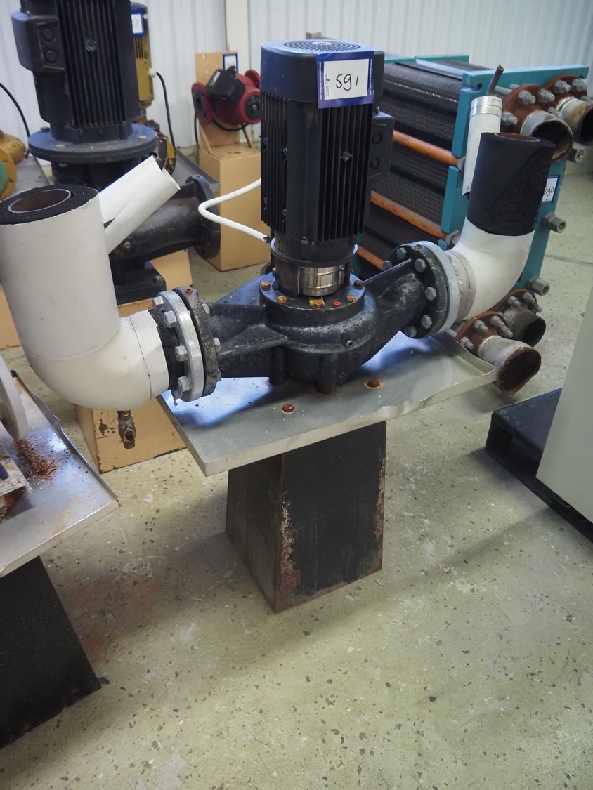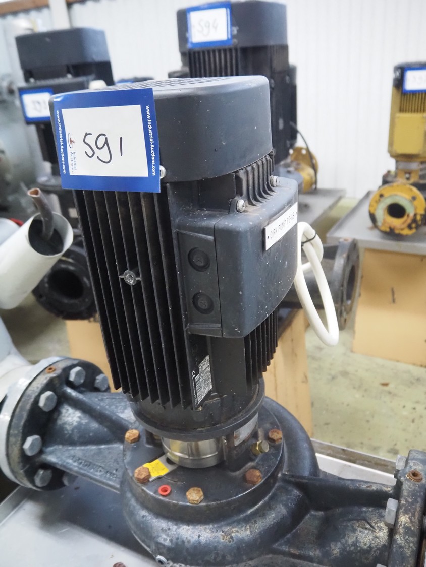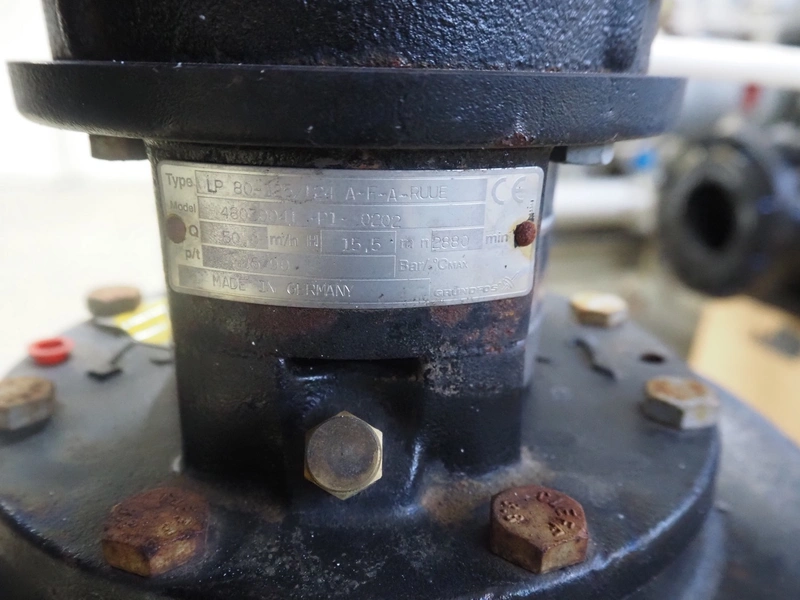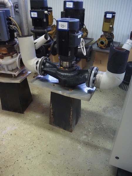 Grundfos single-stage in-line circulation pump, type: LP 80-125/124 A-F-A-RUUE, capacity: 50.0 m³ per hour, dimensions: 1100 mm x 450 mm x 1150 mm. Lot located on another location in Sövestad (SE), viewing and pick up in consultation with Industrial Auctions BV.