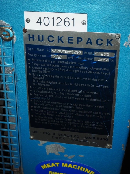 Huckepack vacuum pump, type: 437 015, number: 1733, year of construction: 1979, 400 m³ per hour, dimensions: 1510 mm x 750 mm x 950 mm.