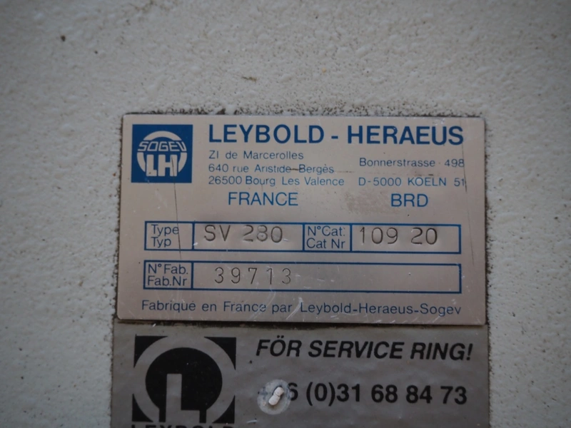 Leybold-Heraeus vacuum pump, type: SV280, fabrication number: 39192, dimensions: 1000 mm x 550 mm x 400 mm.