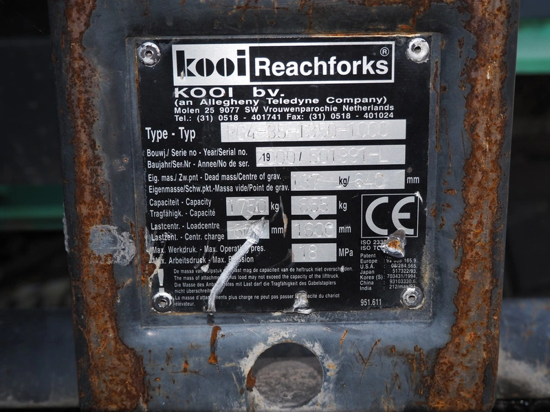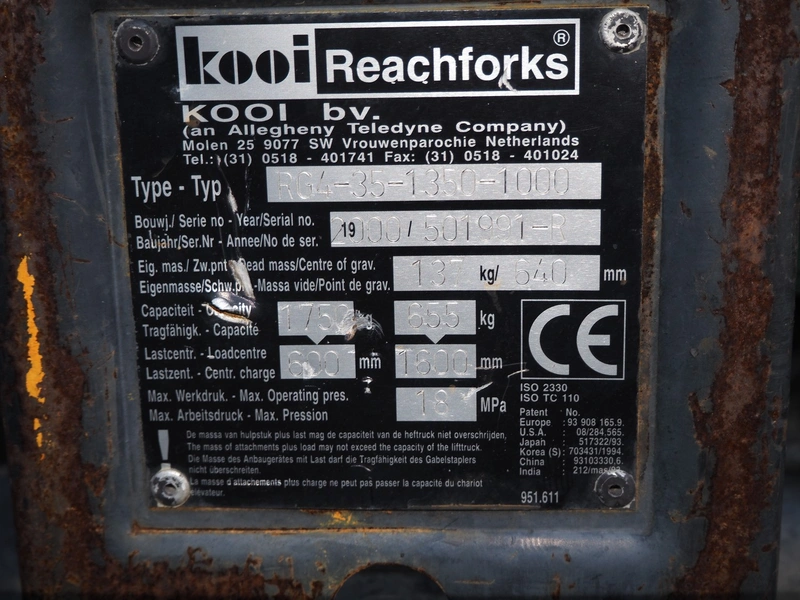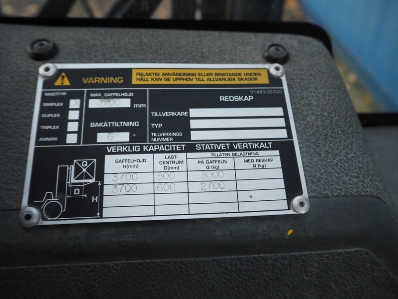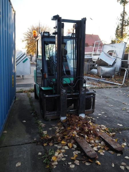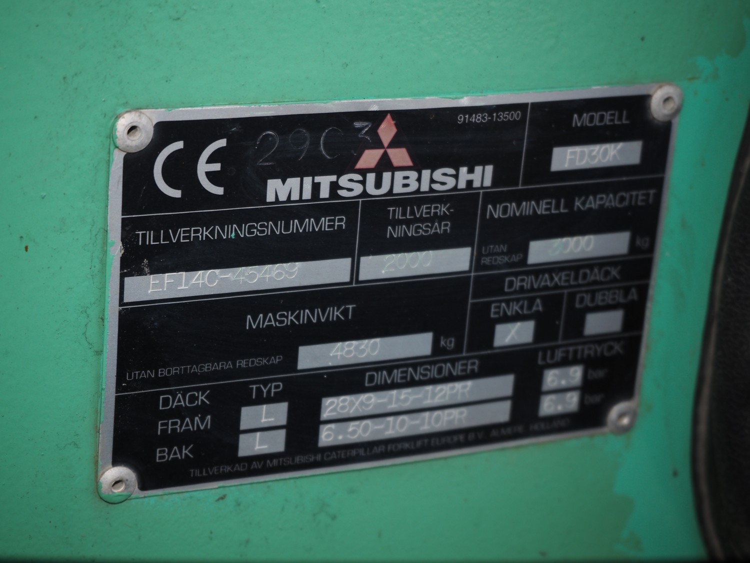 Mitsubishi diesel forklift, model: FD30K, number: EF14C-45469, year of construction: 2000, maximum capacity: 3000 kg, fork length: 1350 mm, total dimensions: 3800 mm x 1300 mm x 2400 mm.