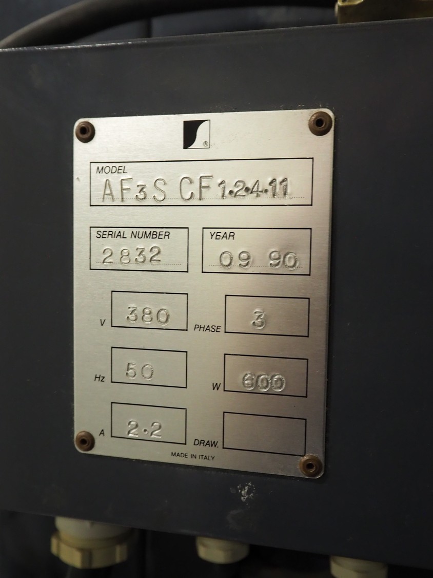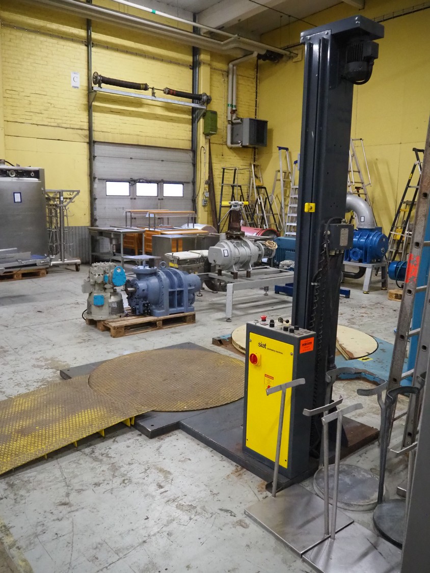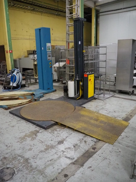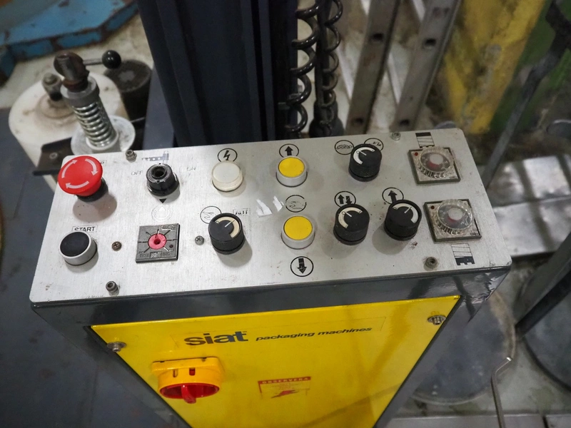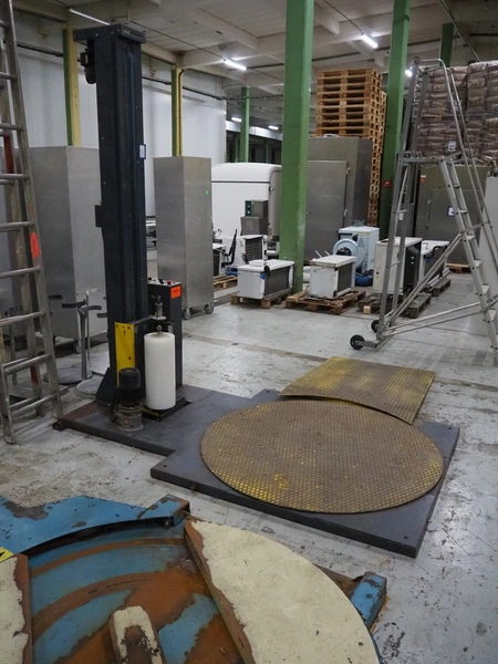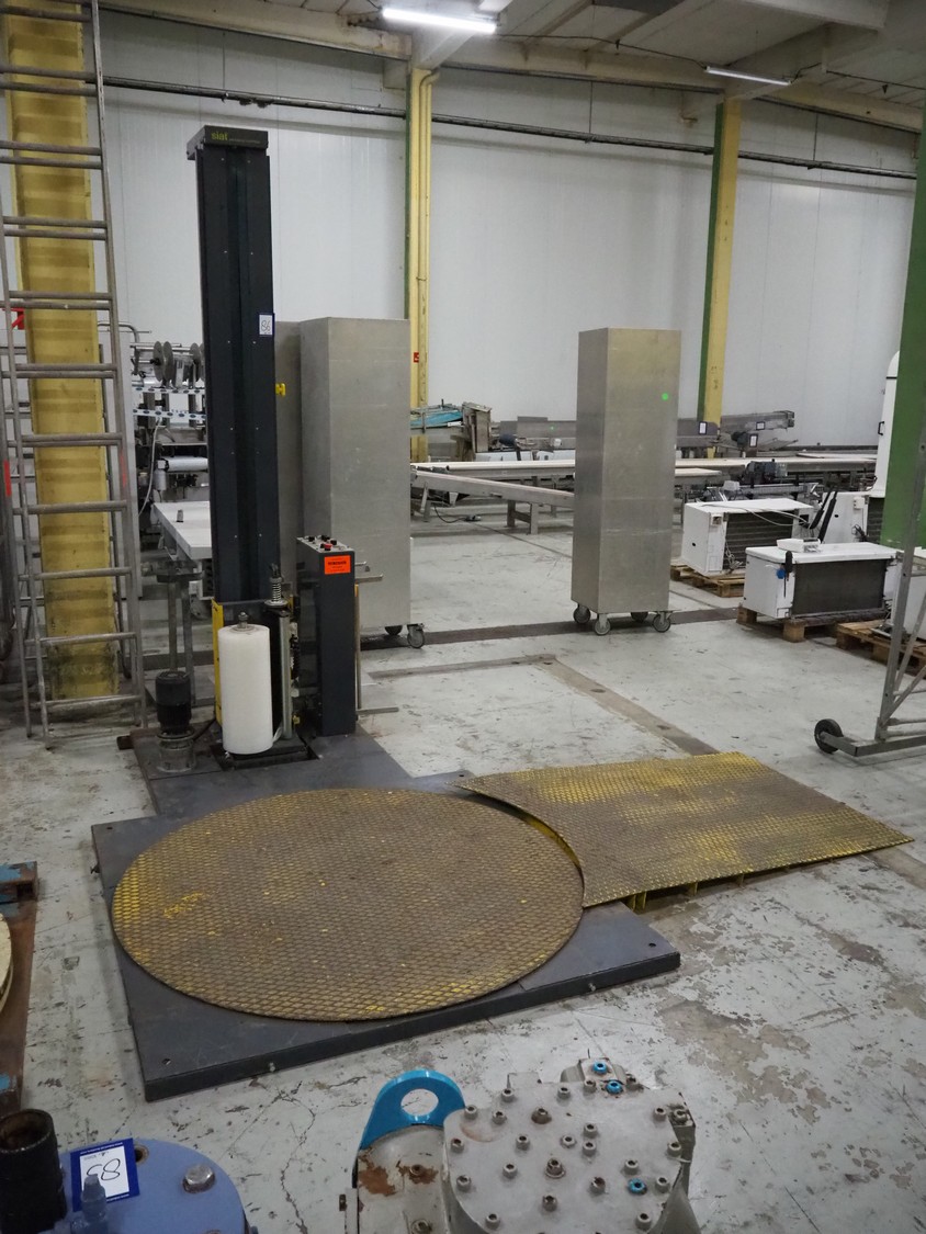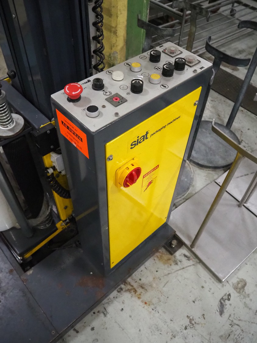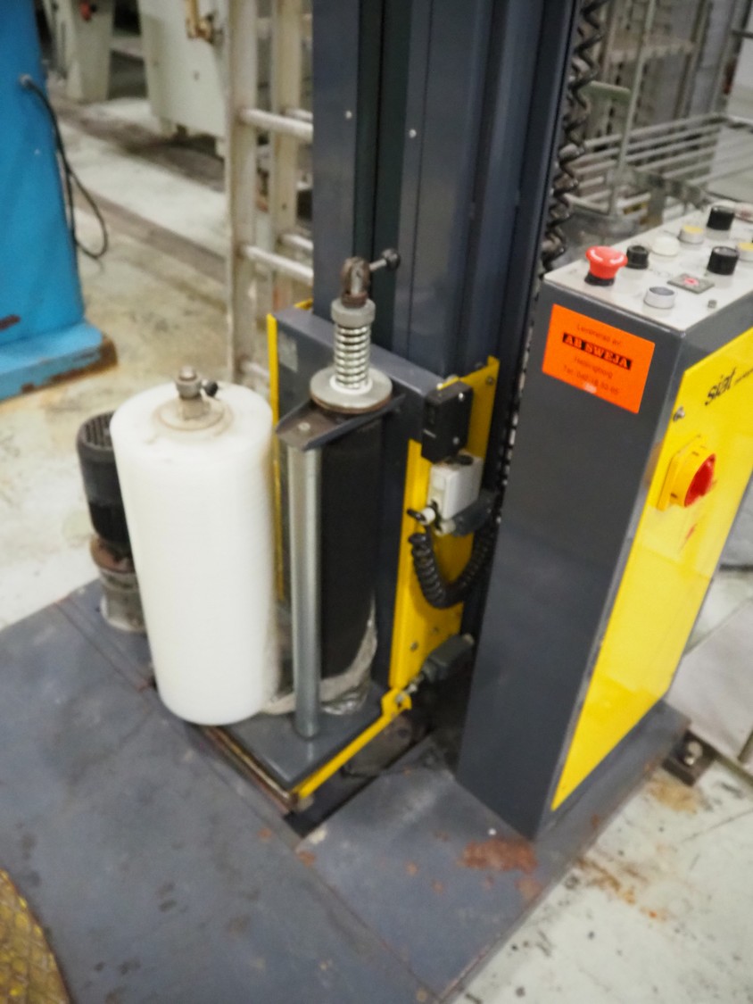 Siat pallet wrapper, model: AF3SCF1.2.4.11, serial number: 2832, year of construction: 09-09, 380 V, 3 Ph, 50 Hz, 2.2 A, 600 W, platform diameter: 1500 mm, total dimensions: 2500 mm x 1500 mm x 2500 mm.